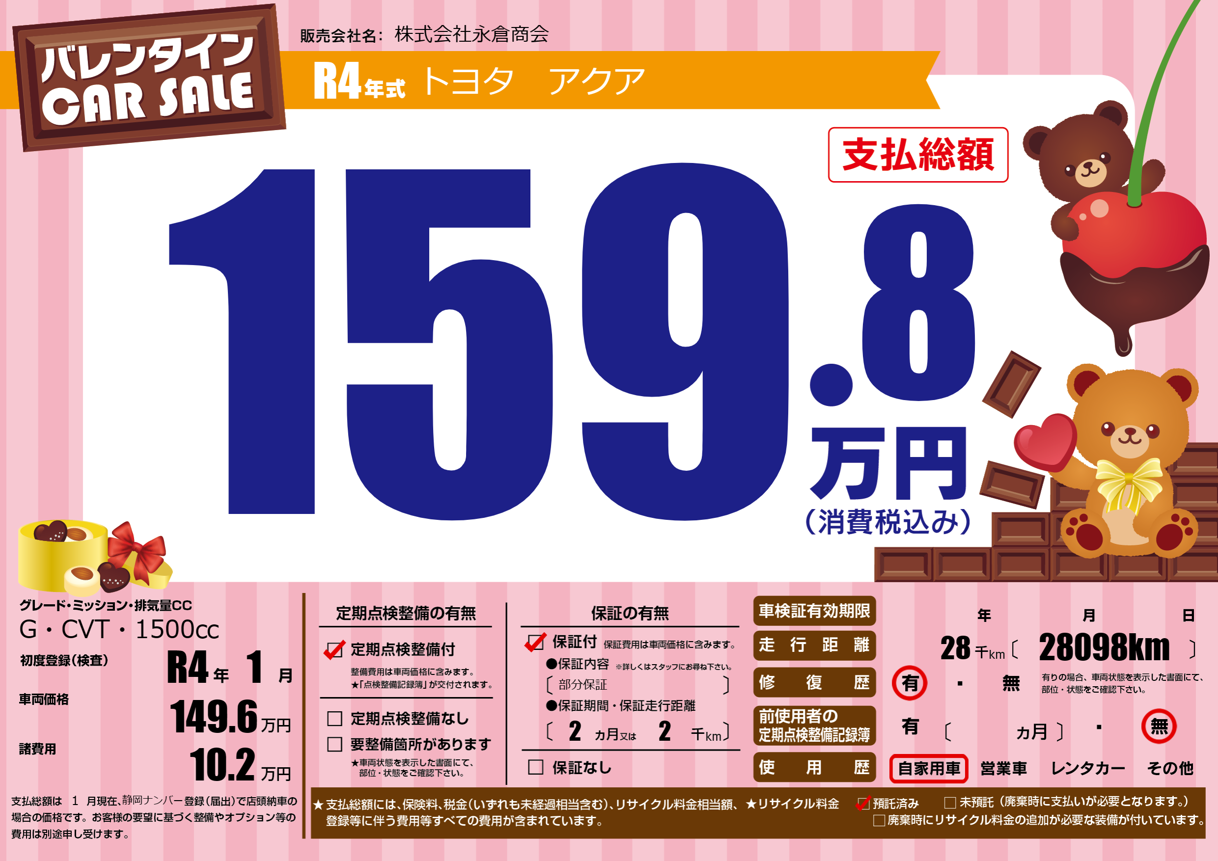 | 走行キロ | 2.8万km | 初年度登録 | R4年1月 |