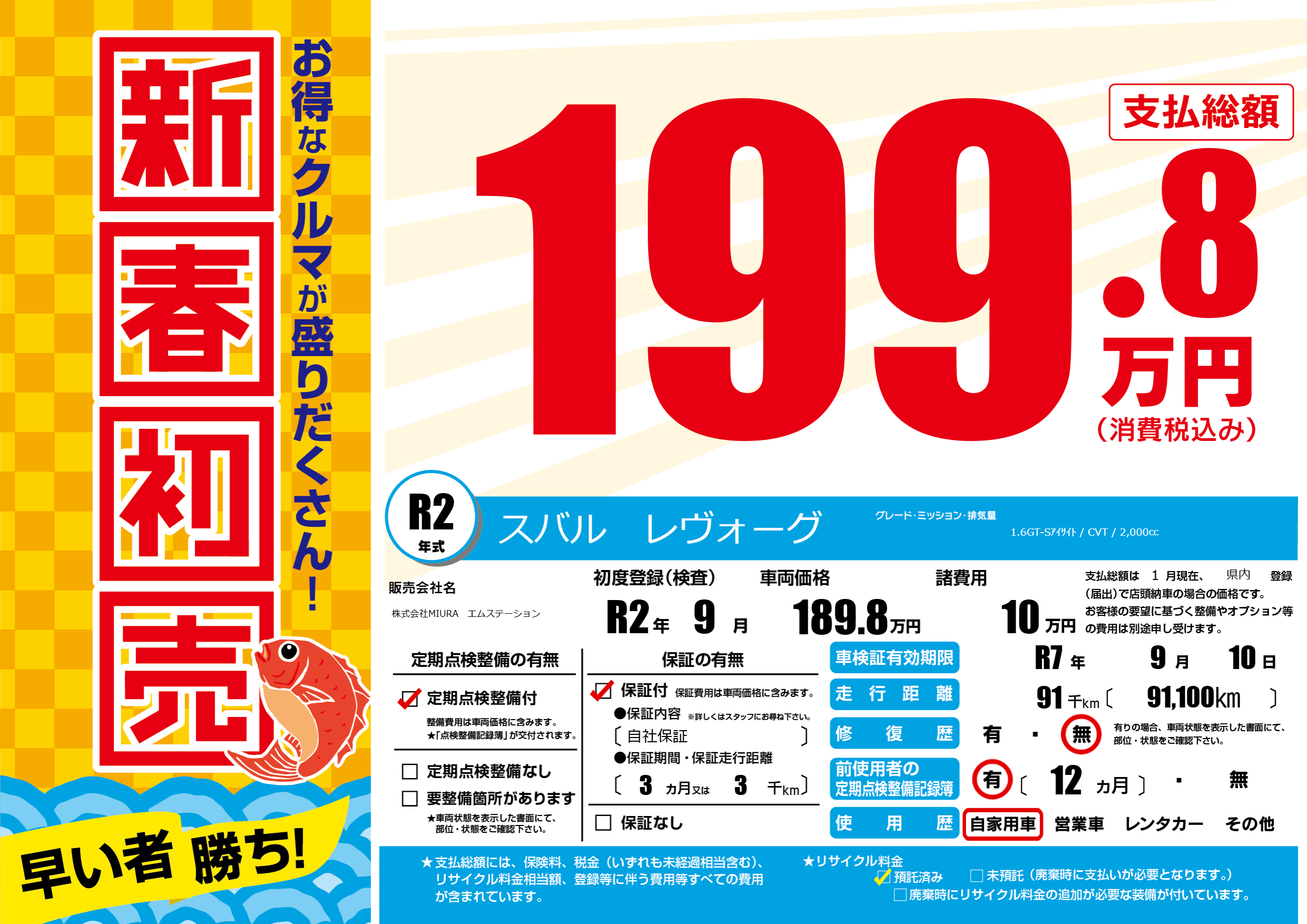 | 車名 | スバル レヴォーグ | グレード ミッション 排気量 |