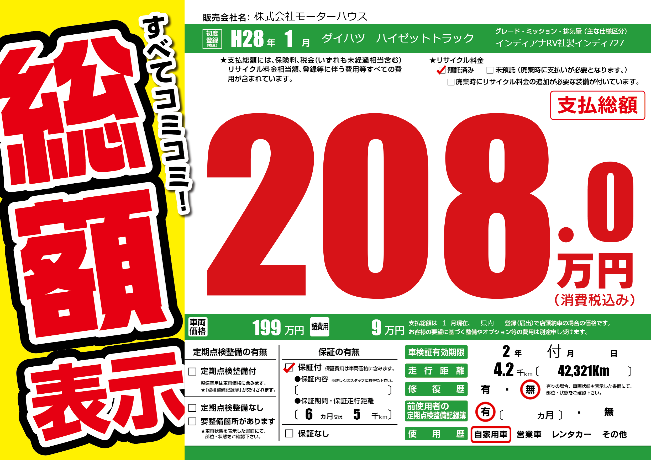 保証なし 保証内容(---) 6ヶ月または(5)千kmまで |