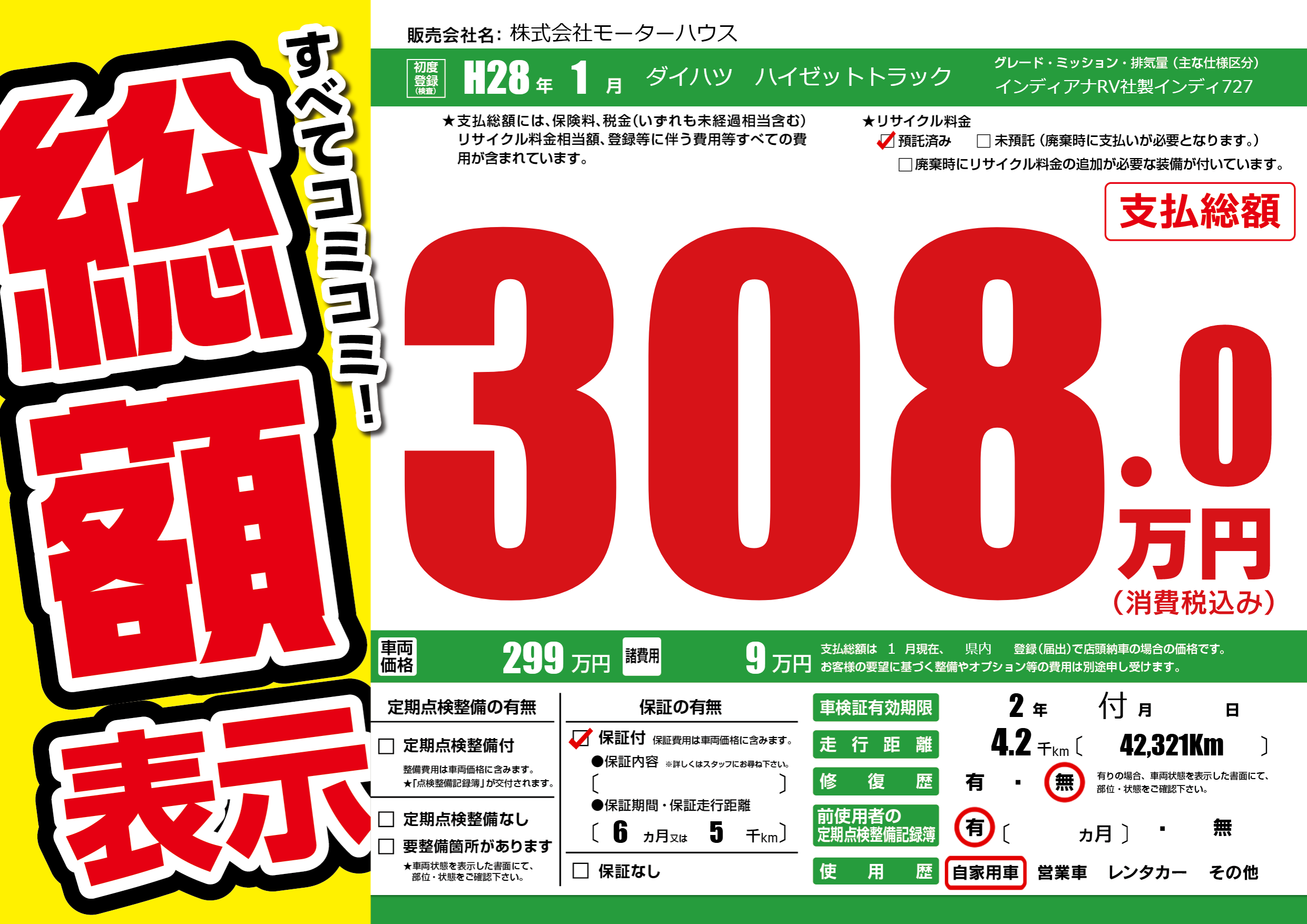 保証なし 保証内容(---) 6ヶ月または(5)千kmまで |