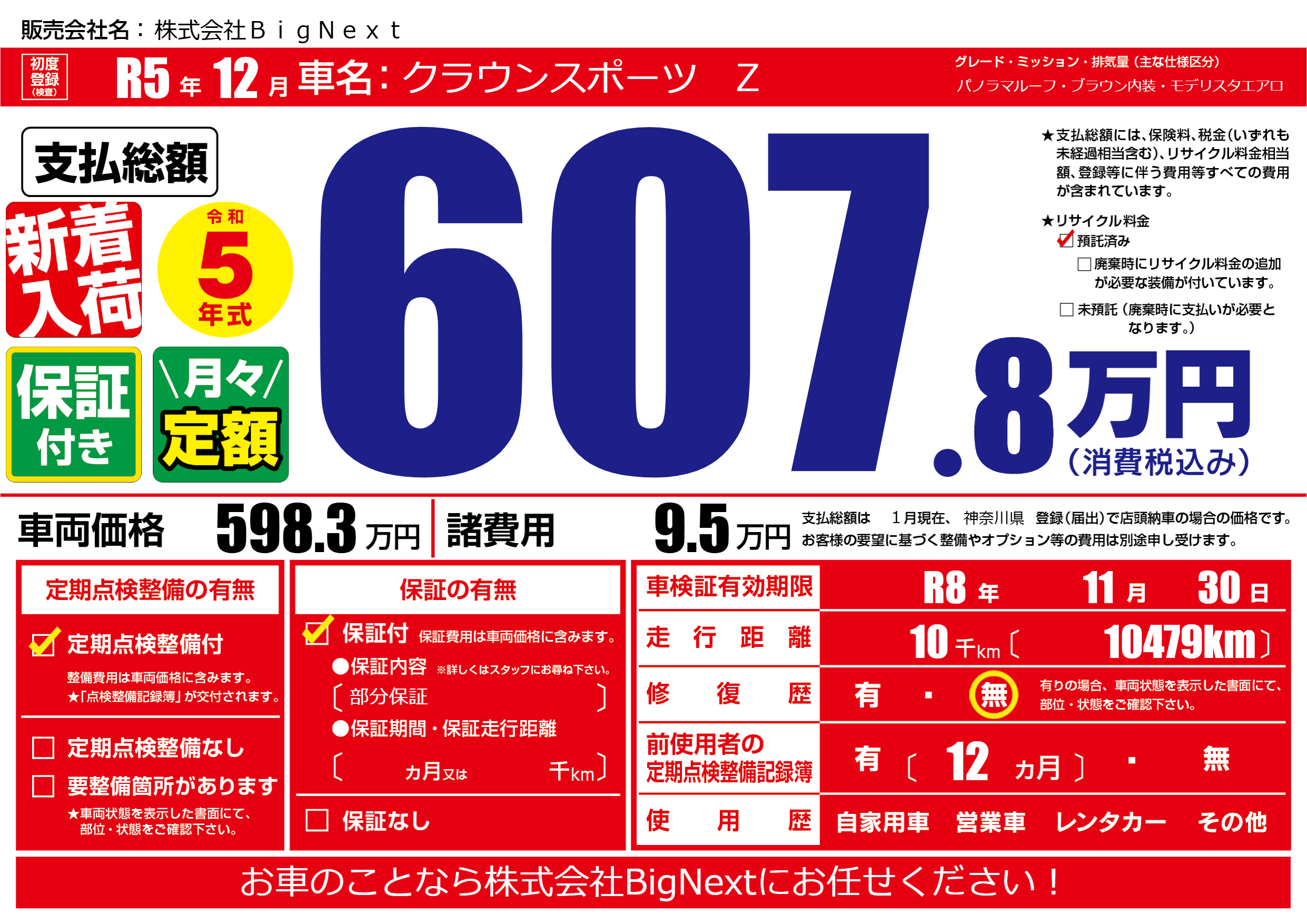 なし | 車検制限 | R8年11月30月 |