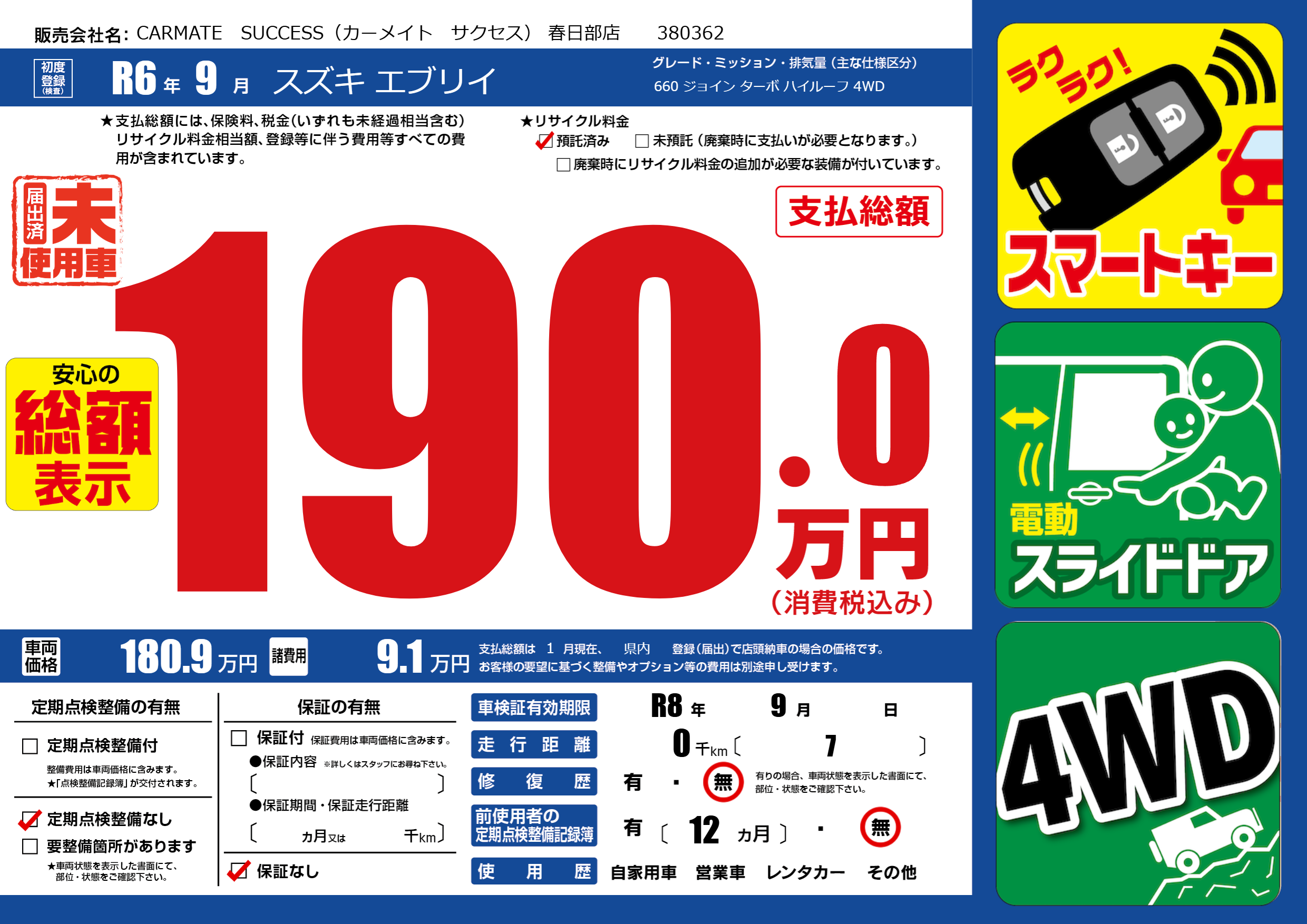 | 車名 | スズキ エブリイ | グレード ミッション 排気量 |