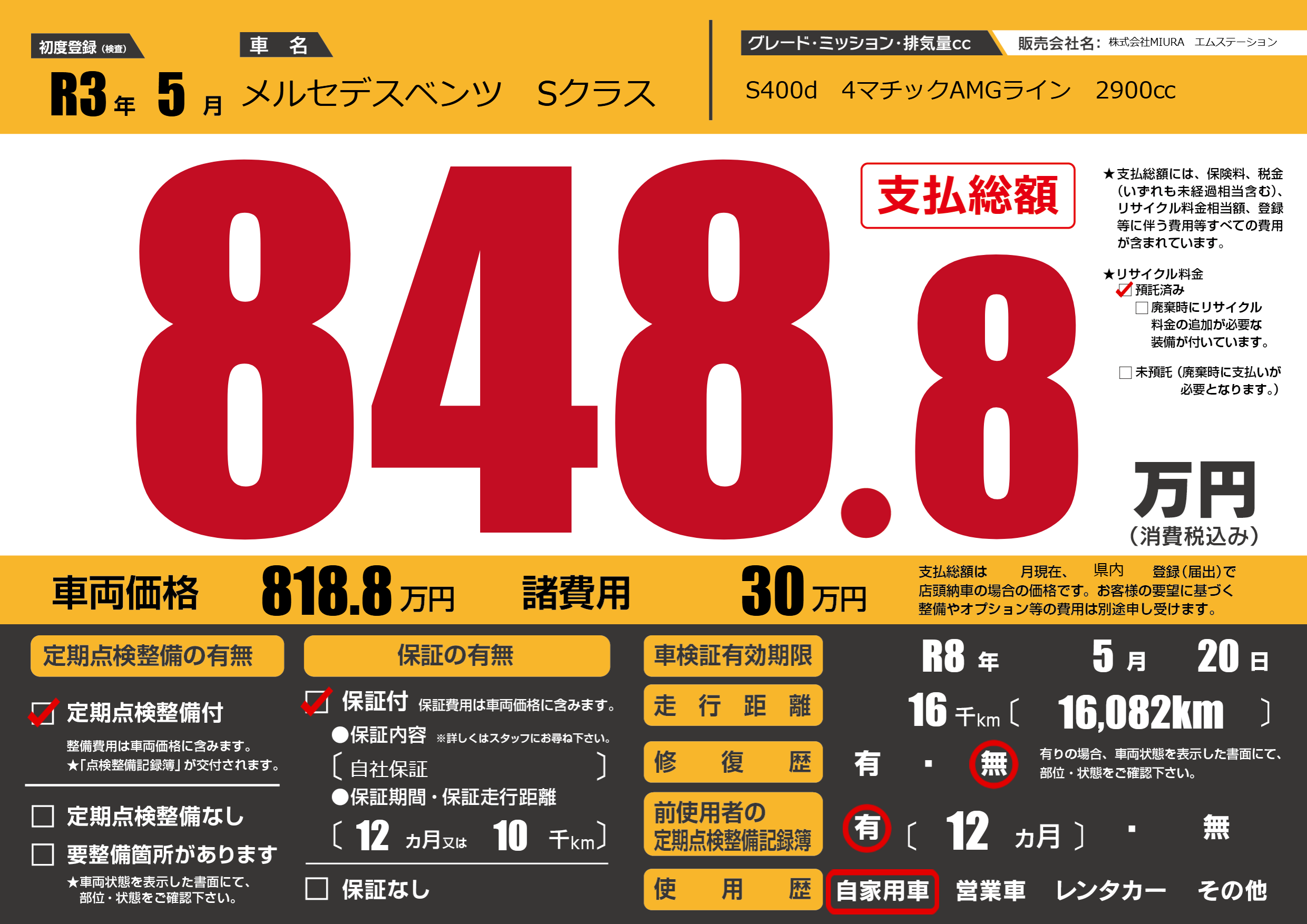 なし | 車検制限 | R8年5月20月 |