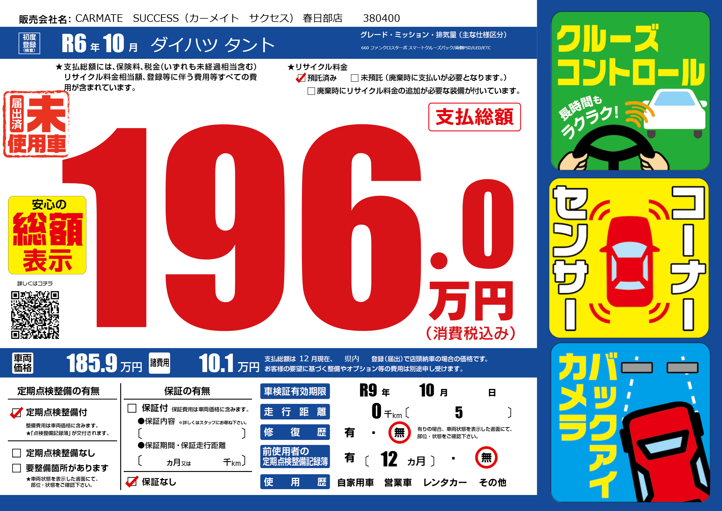 | 走行キロ | - | 初年度登録 | R6年10月 |