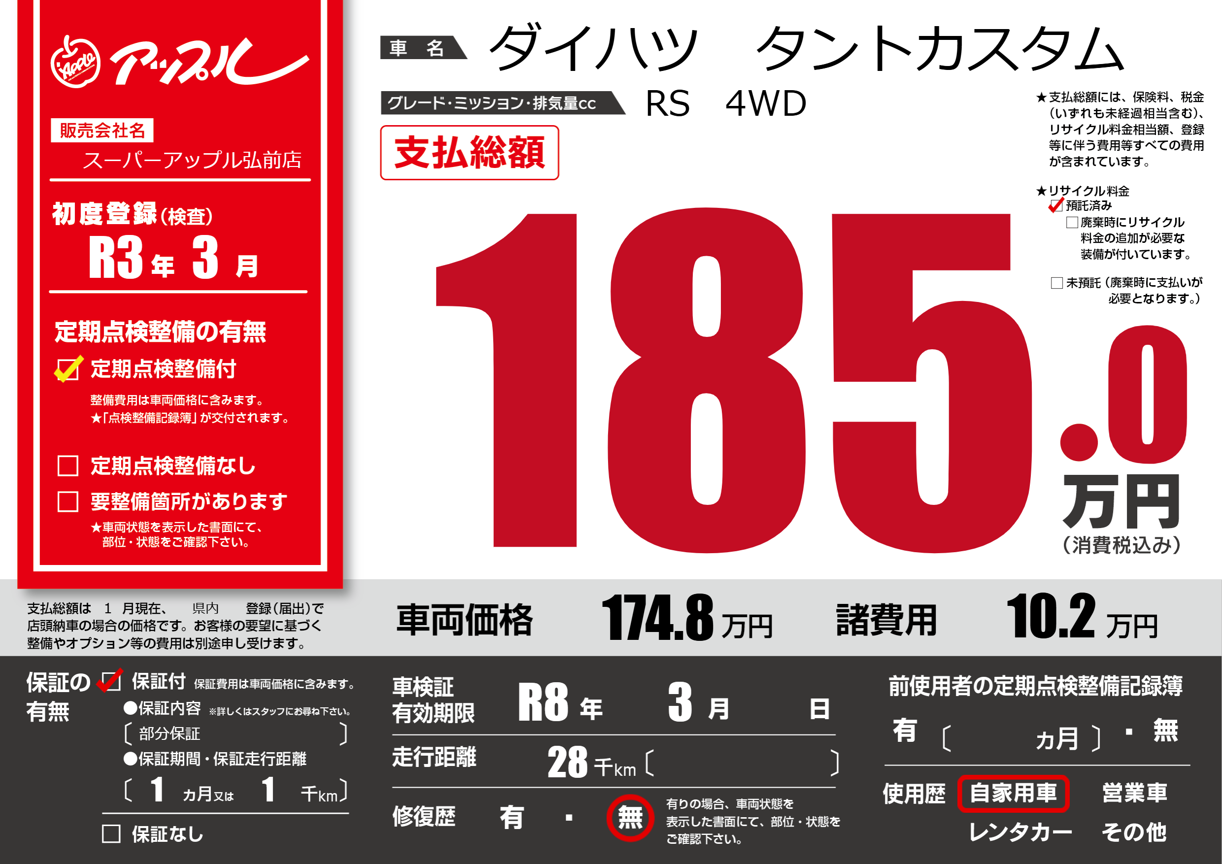 | 走行キロ | 2.8万km | 初年度登録 | R3年3月 |