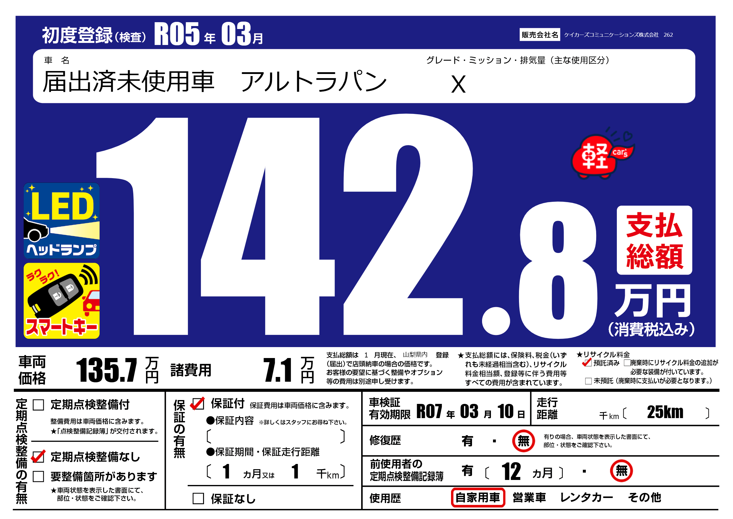 | 車検制限 | R07年 03月 10日 | ||