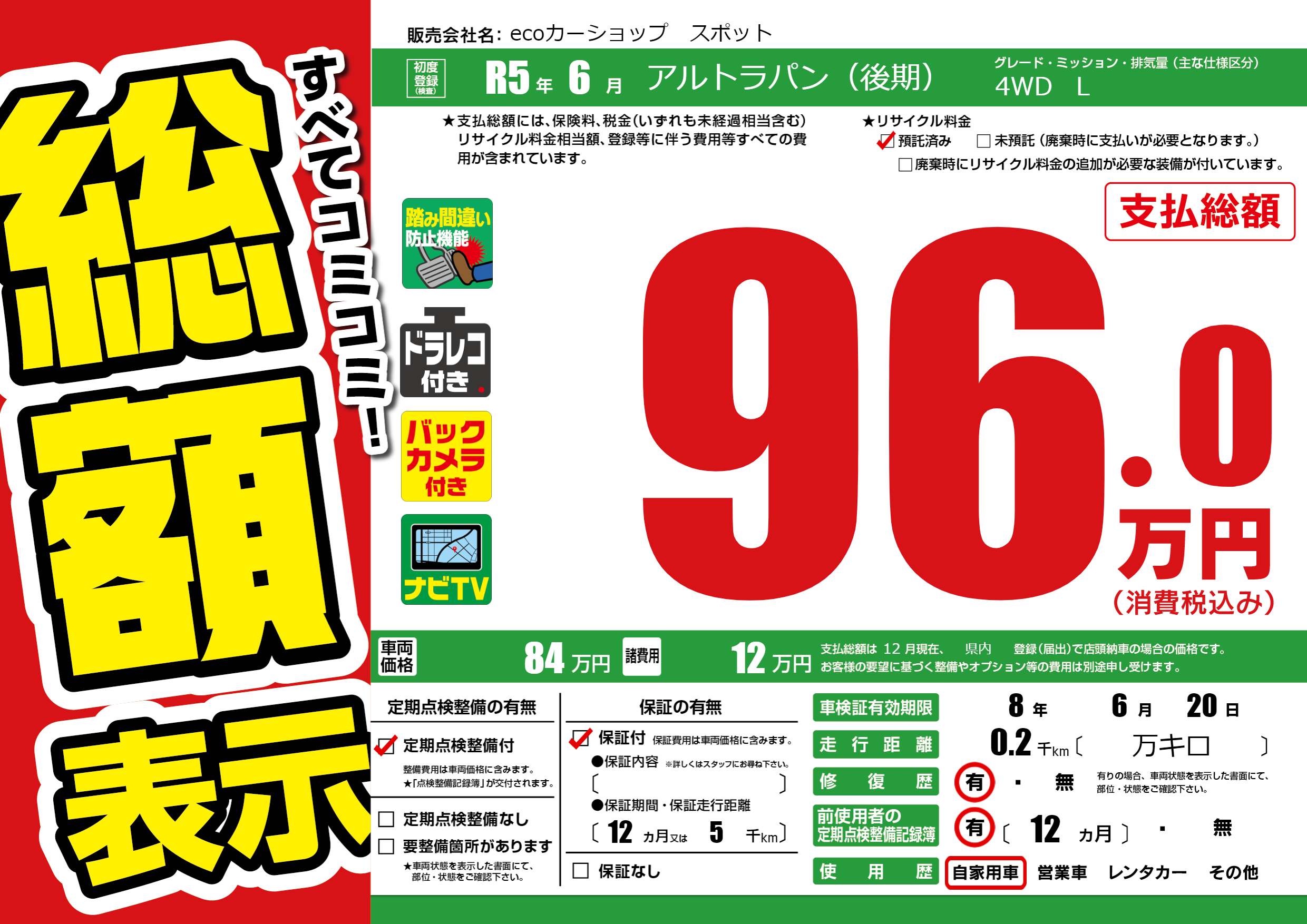 | 車検制限 | 8年 6月 20日 | ||