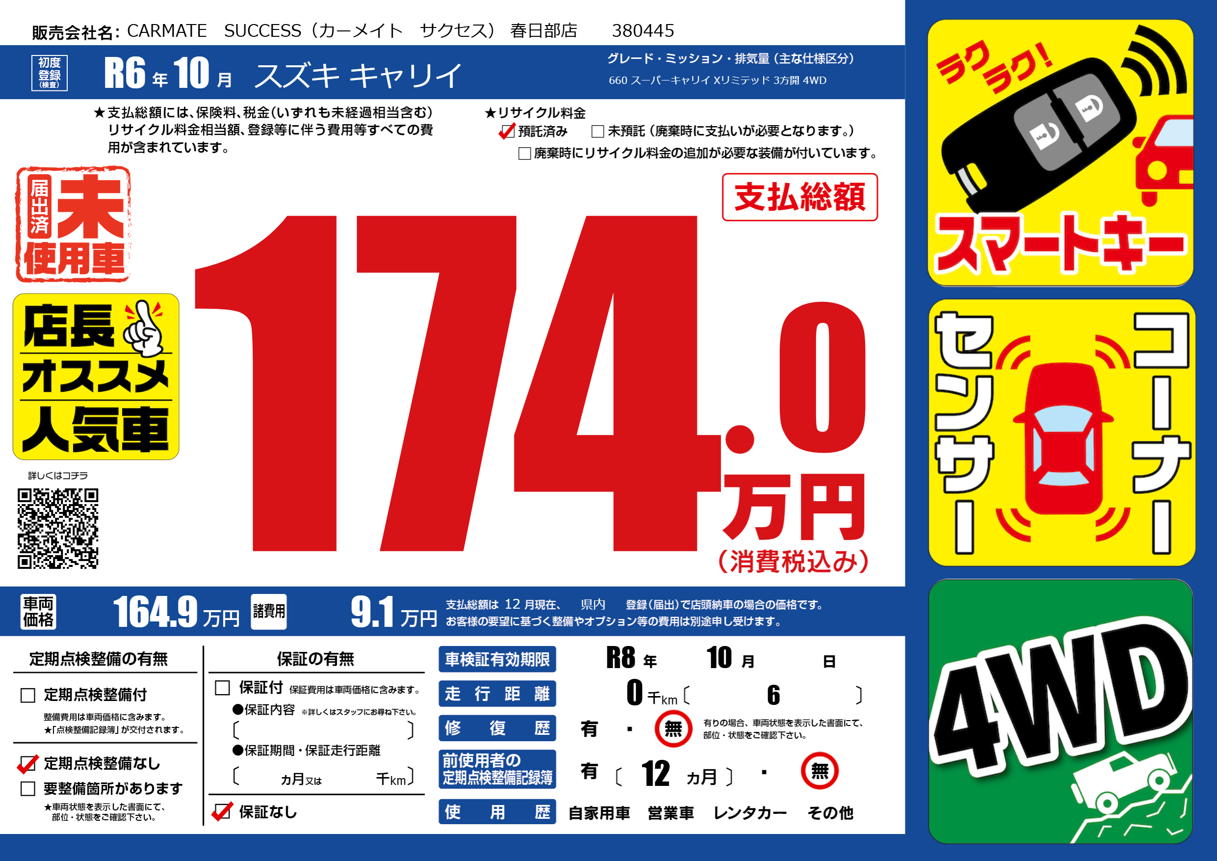 | 走行キロ | - | 初年度登録 | R6年10月 |