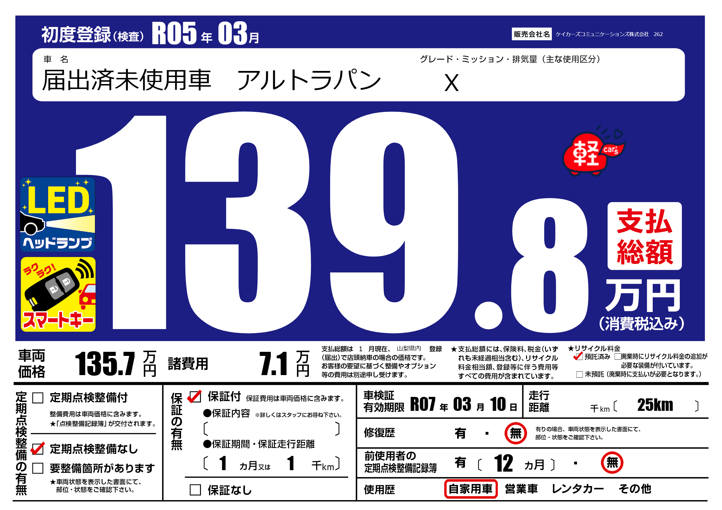 | 車検制限 | R07年 03月 10日 | ||