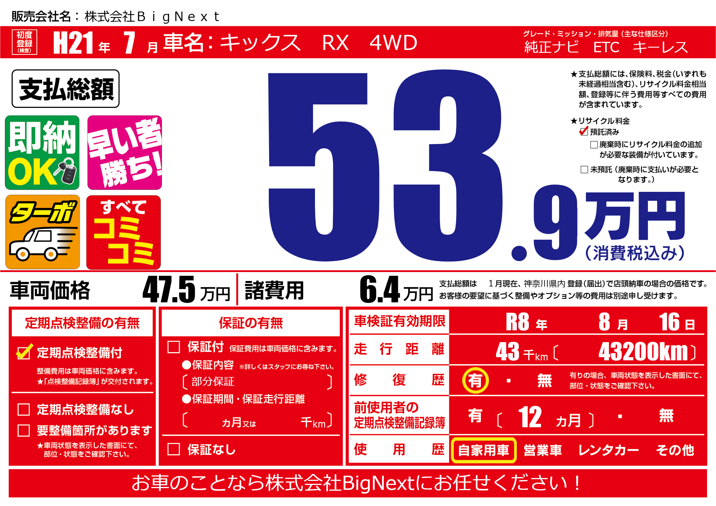 | 車検制限 | R8年 8月 16日 | ||