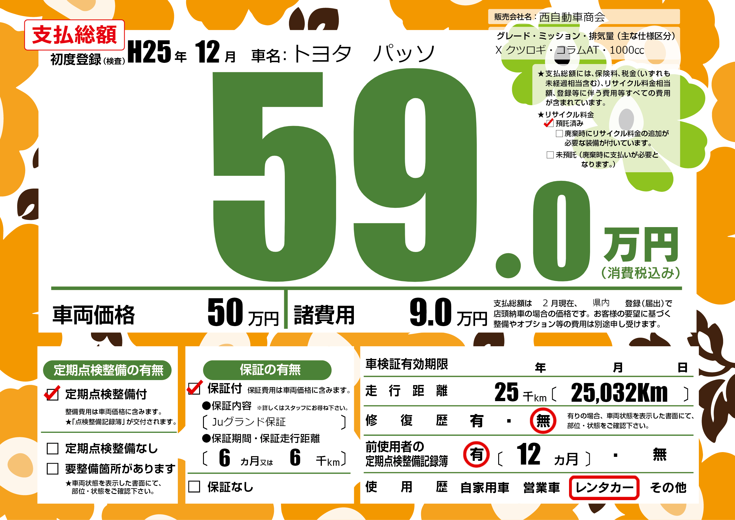 保証付き 保証内容(Juグランド保証) 6ヶ月または6千km |