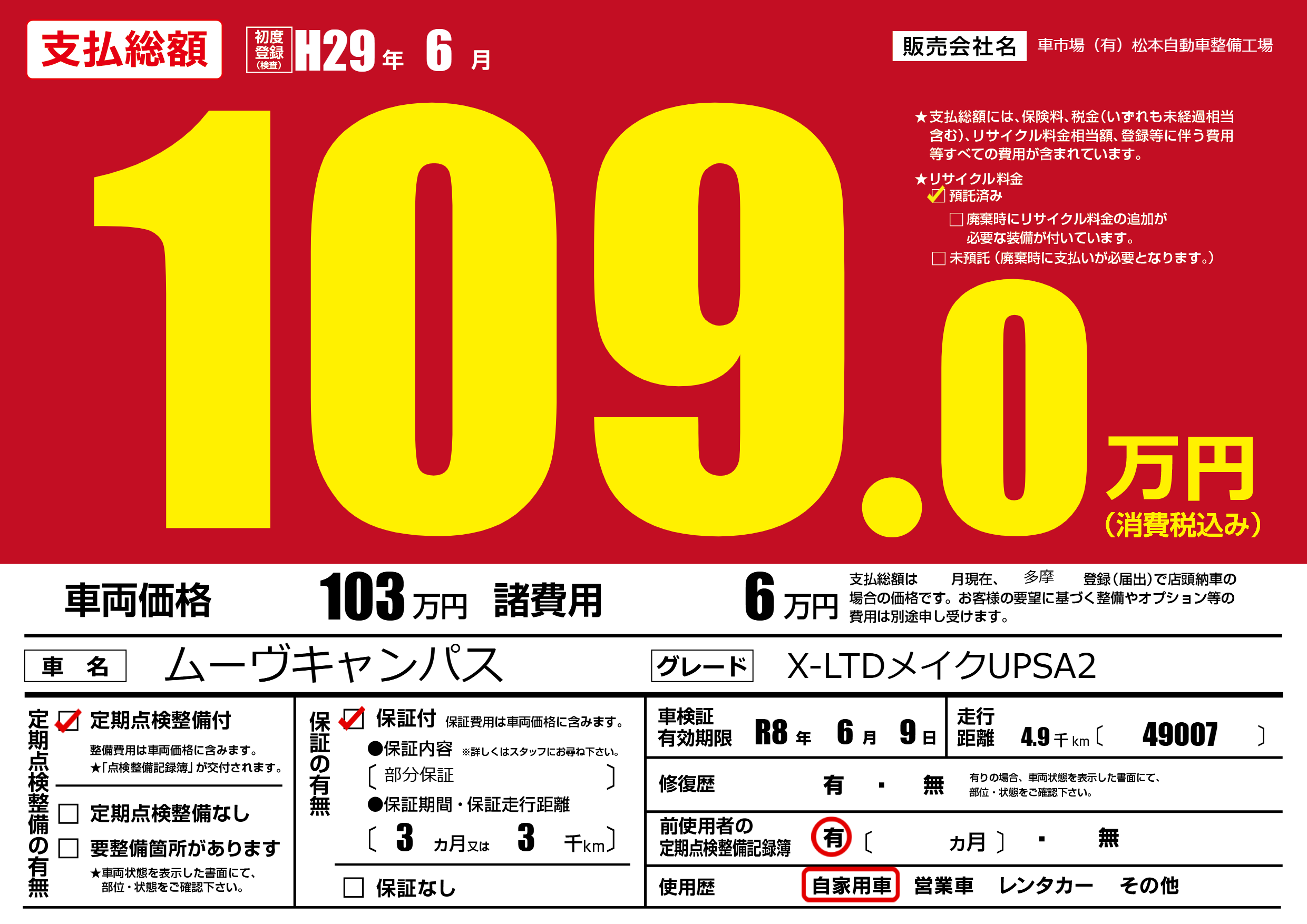 | 車検制限 | R8年 6月 9日 | ||