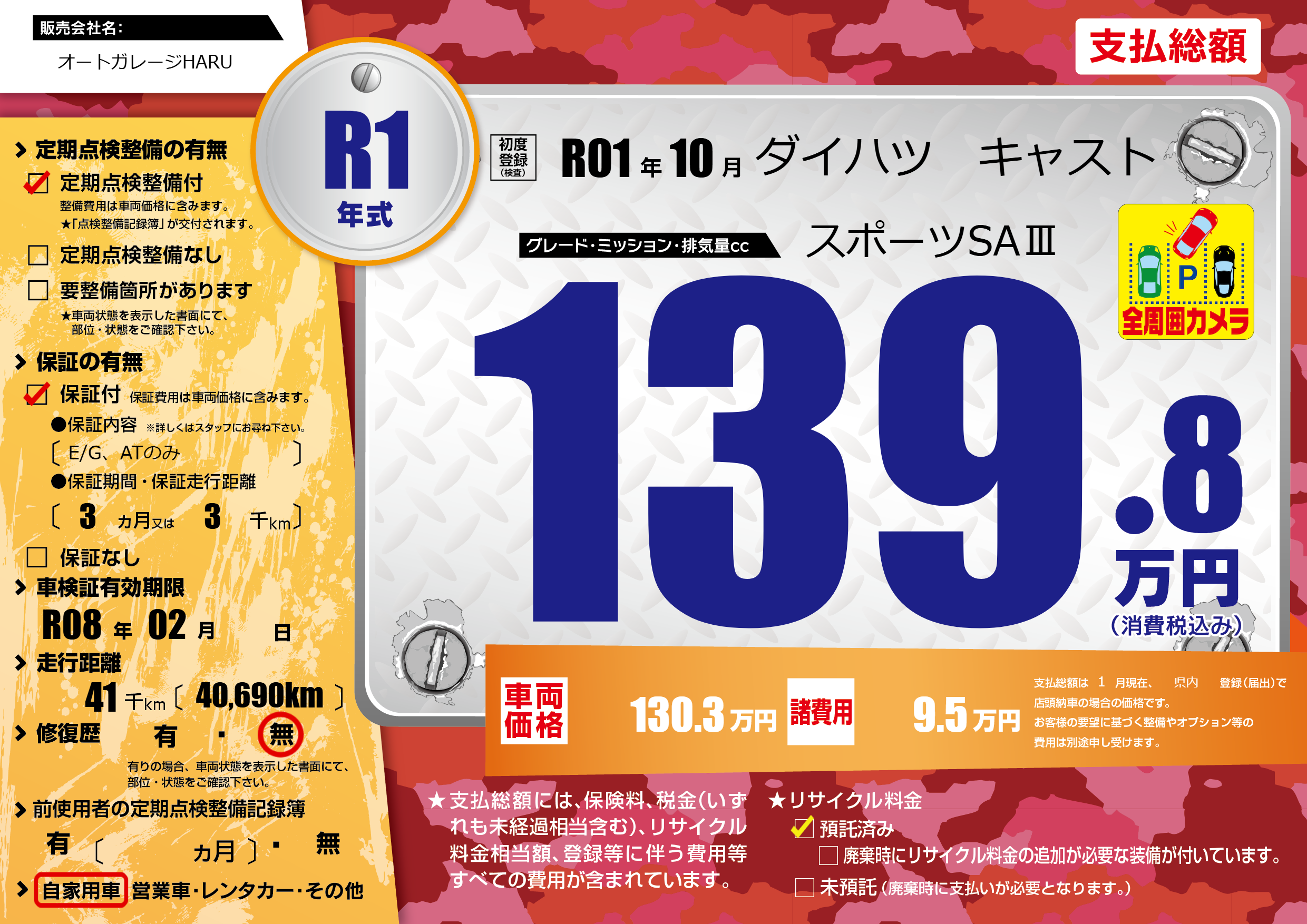 | 車検制限 | R08年 02月 - 日 | ||