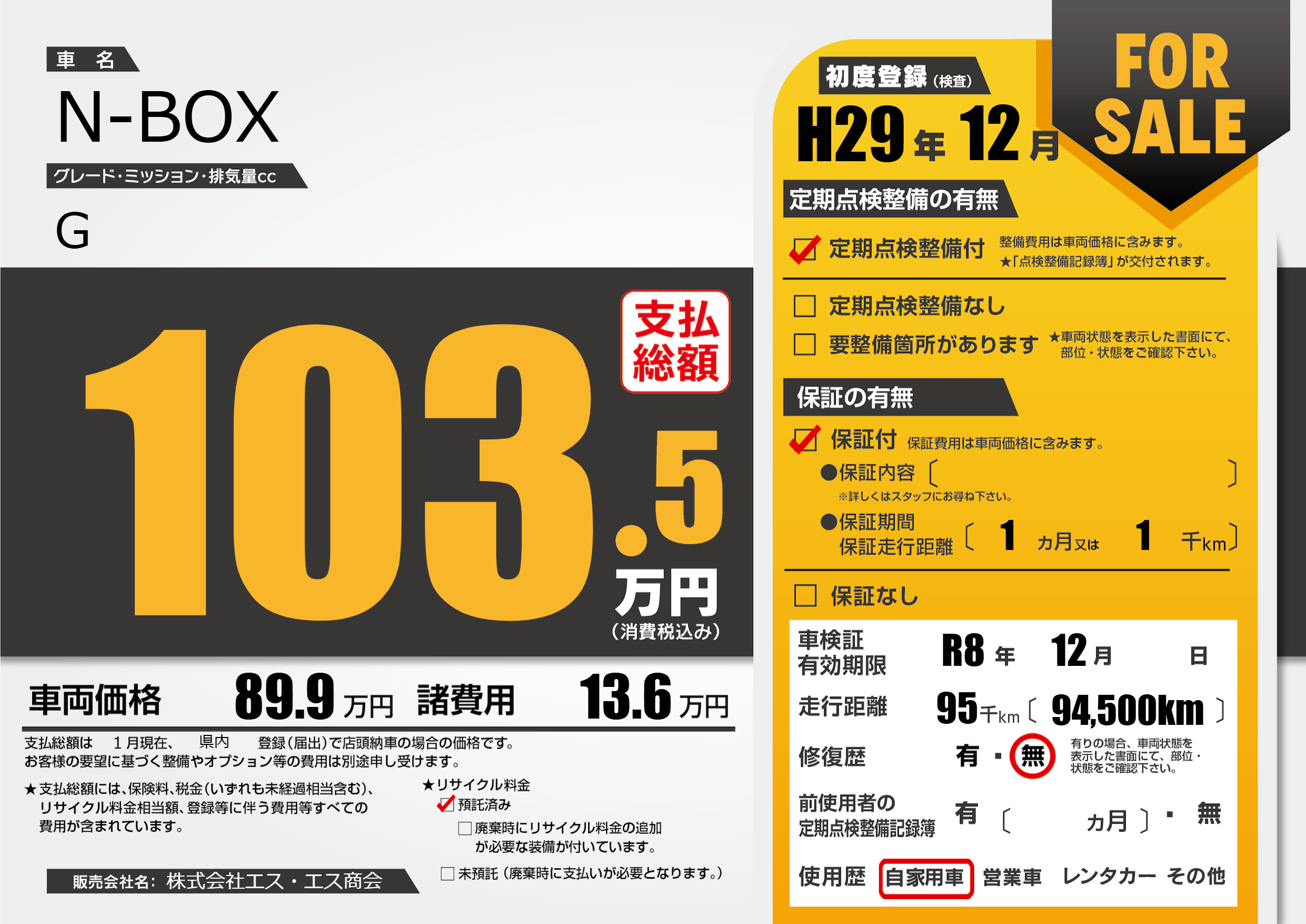 なし | 車検制限 | R8年12月---月 |