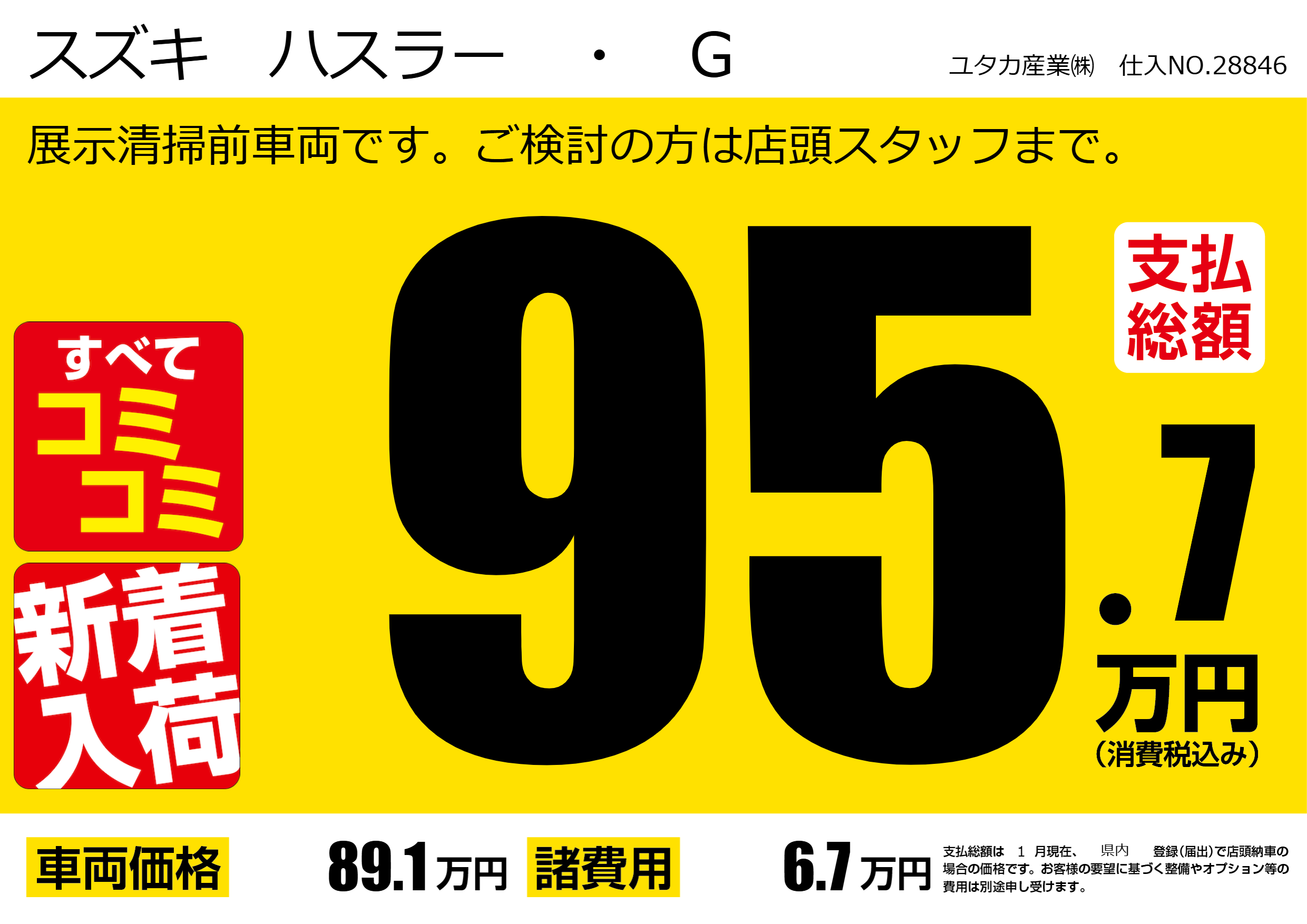 | 車名 | スズキ ハスラー ・ G | グレード ミッション 排気量 |