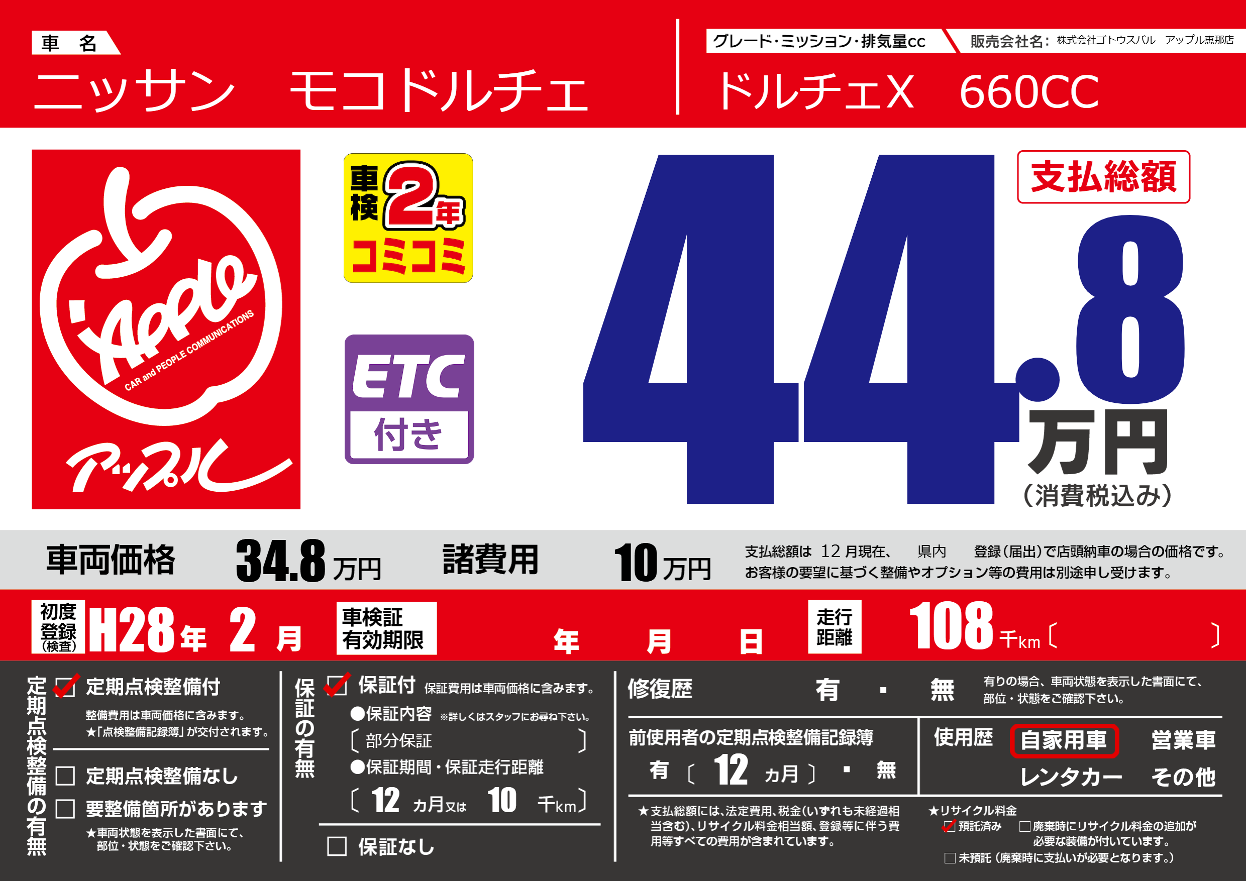 | 車名 | ニッサン モコドルチェ | グレード ミッション 排気量 |