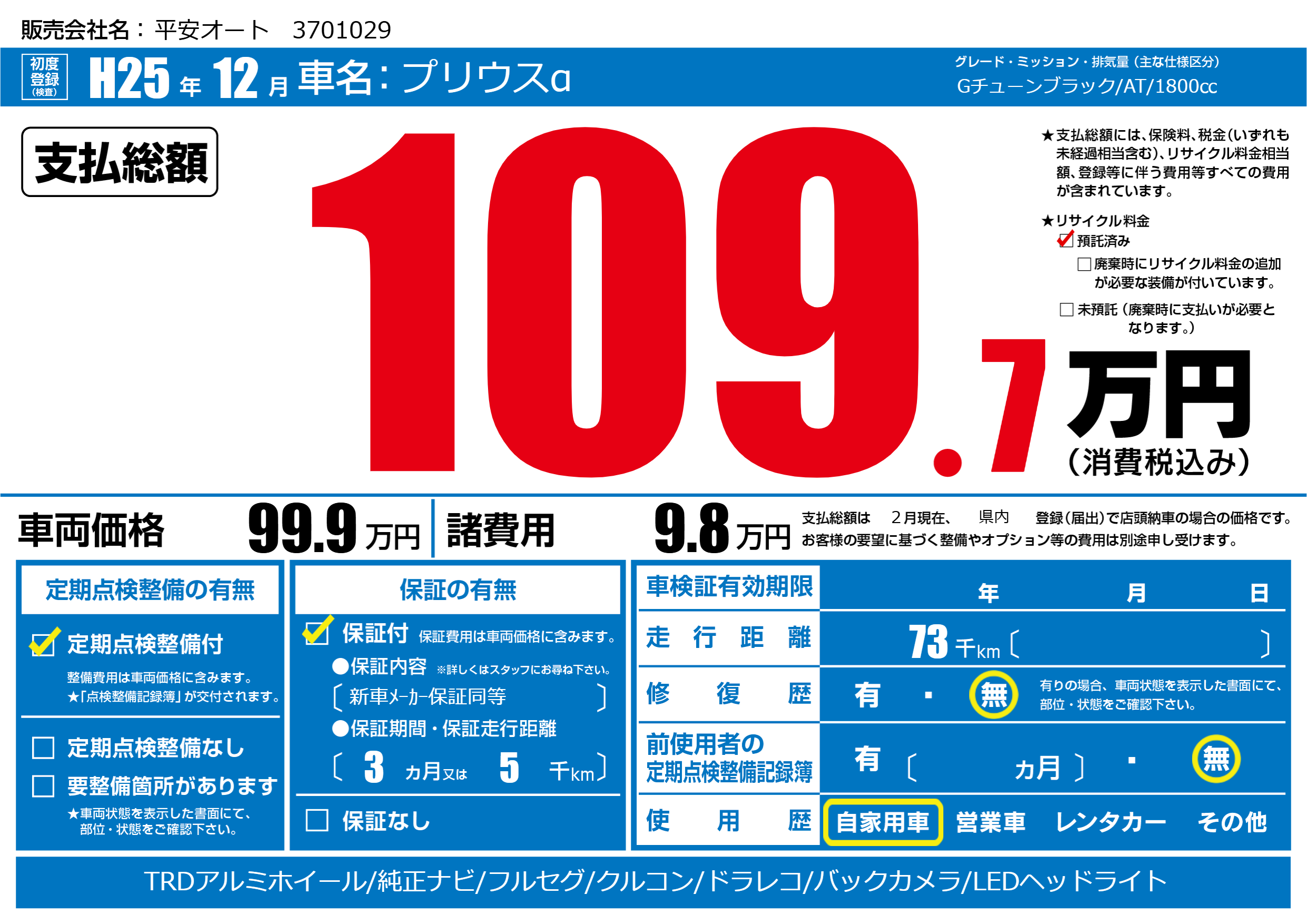 | 定期点検整備 | 定期点検整備あり | ||