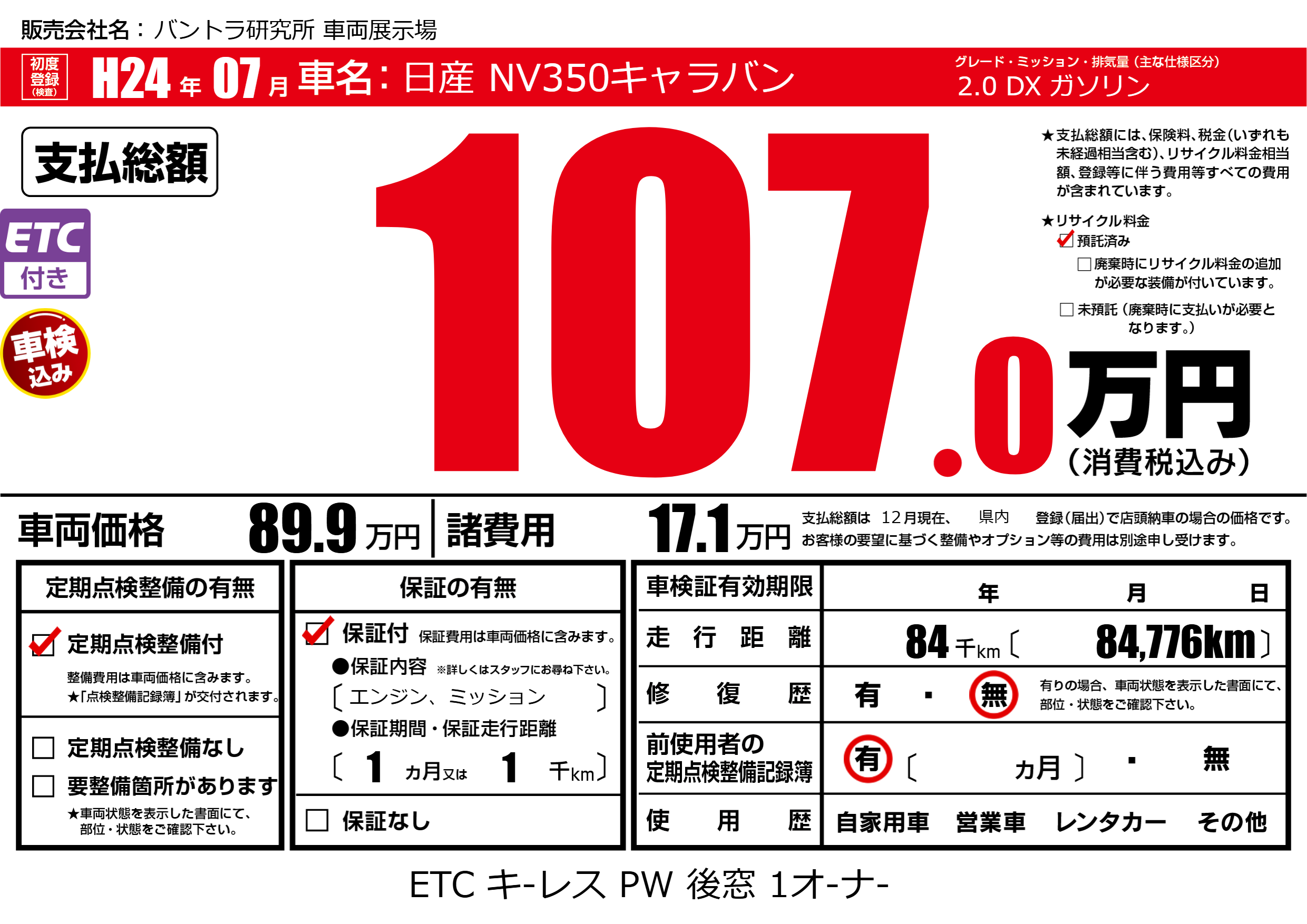| 定期点検整備 | 定期点検整備あり | ||