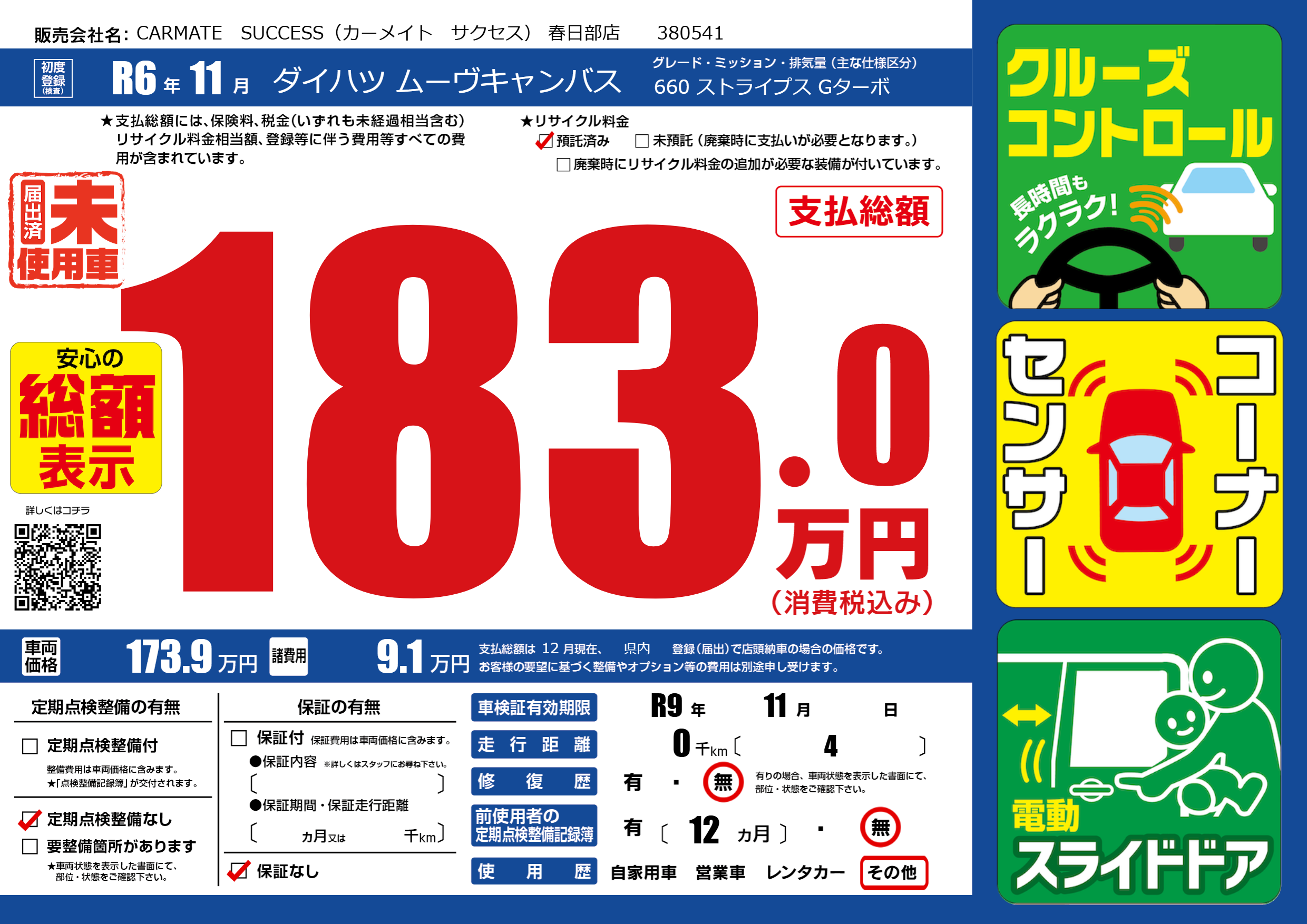 | 走行キロ | - | 初年度登録 | R6年11月 |