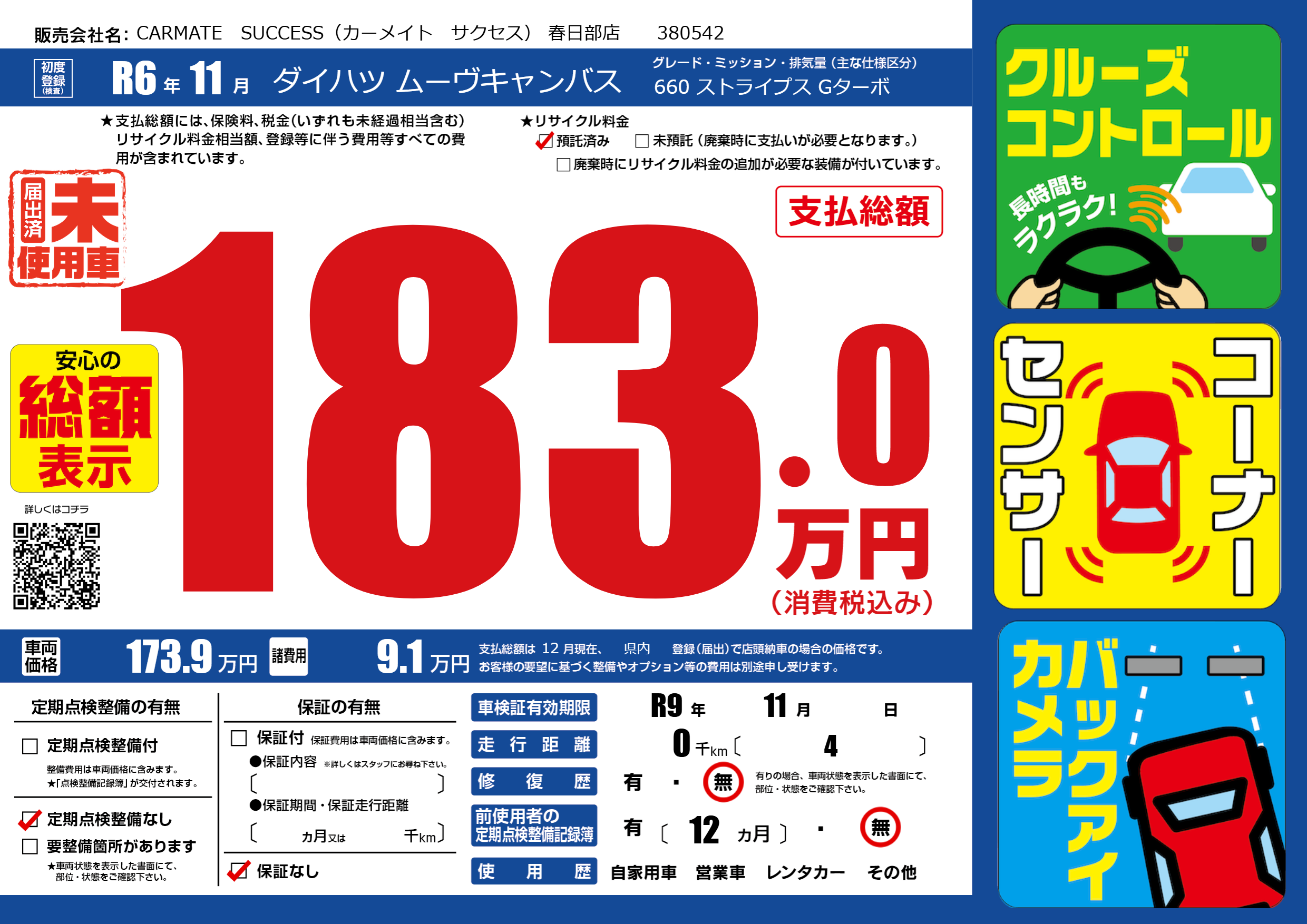 | 車検制限 | R9年 11月 - 日 | ||
