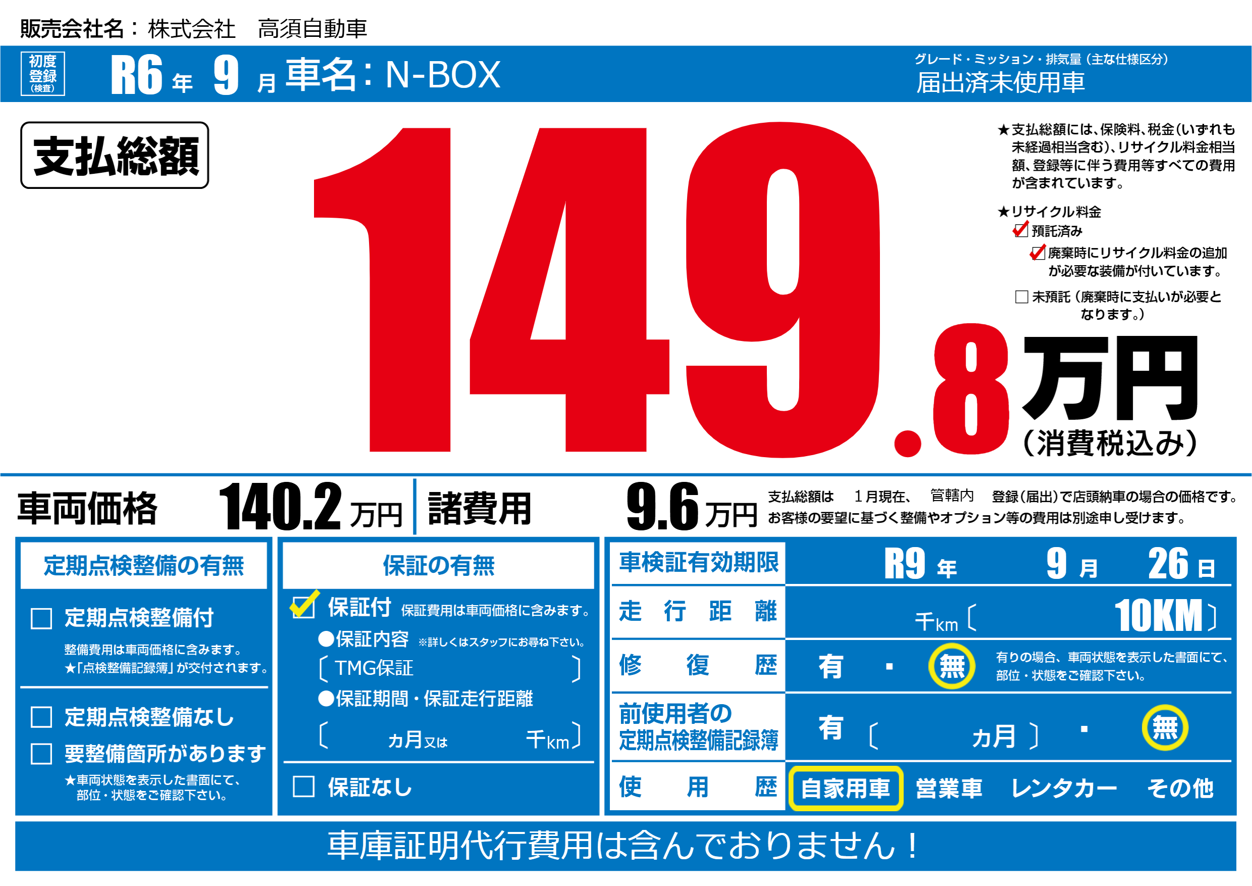 なし | 車検制限 | R9年9月26月 |