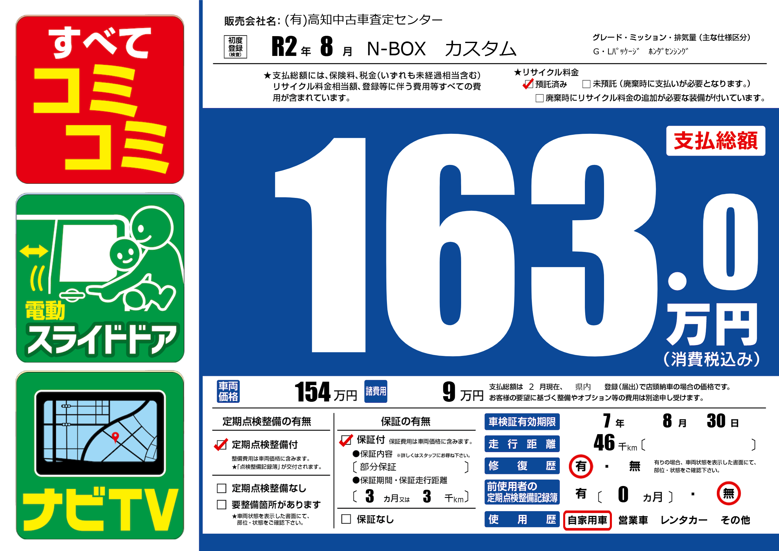 | 車名 | N-BOX カスタム | グレード ミッション 排気量 |