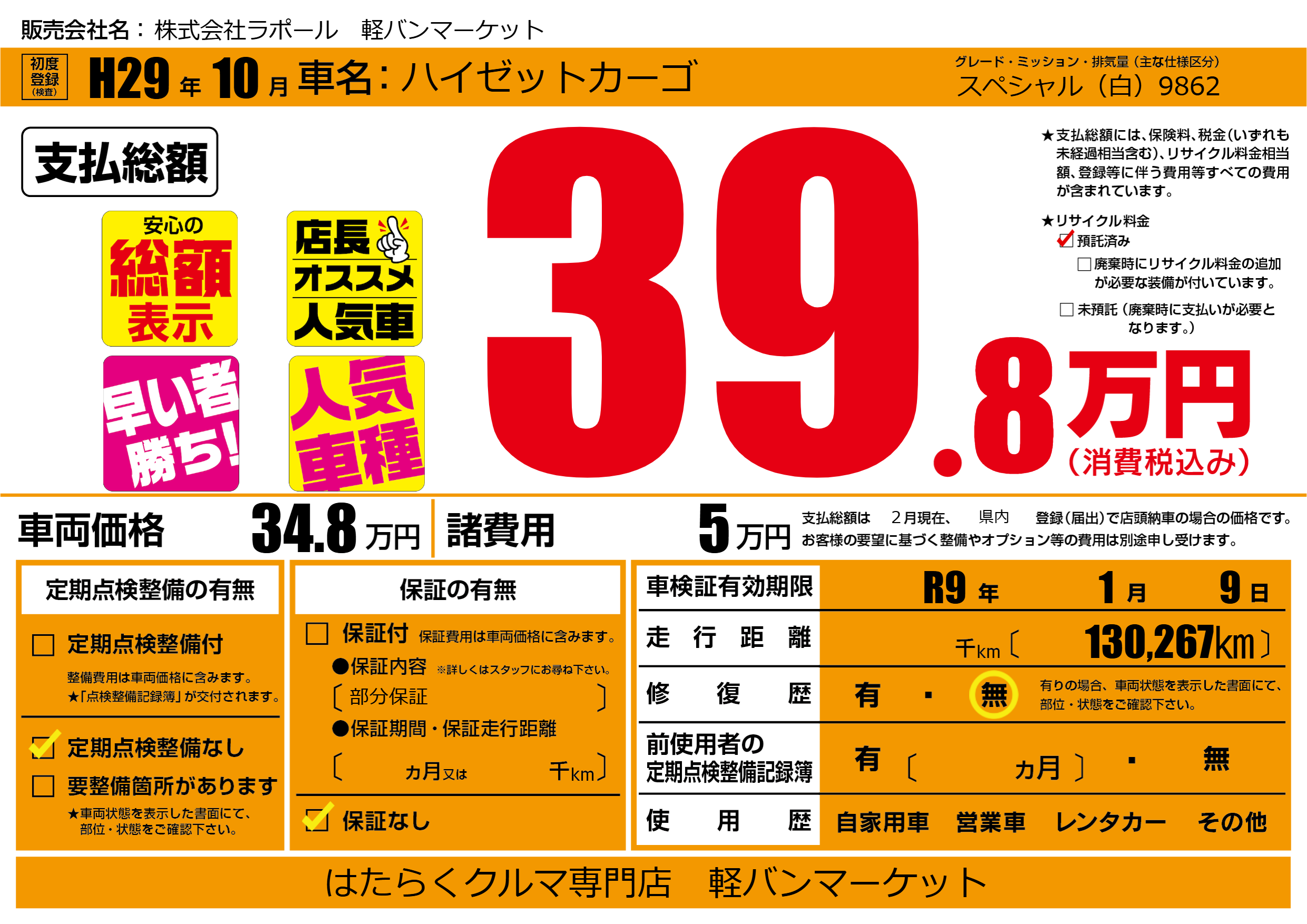 なし | 車検制限 | R9年1月9月 |