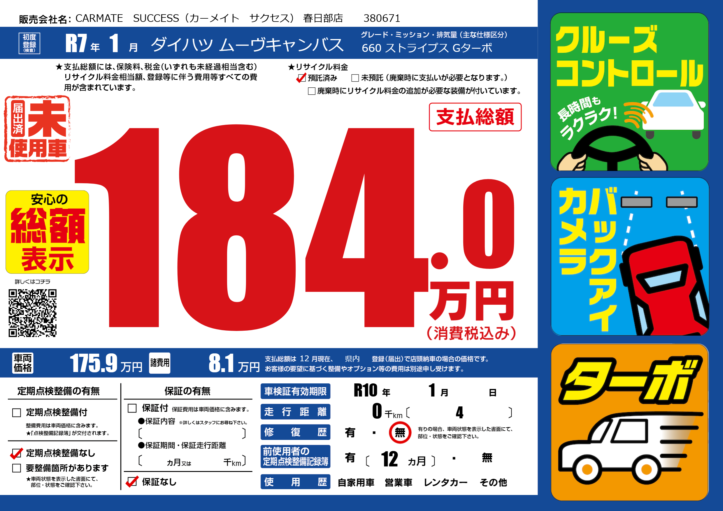 | 車検制限 | R10年 1月 - 日 | ||