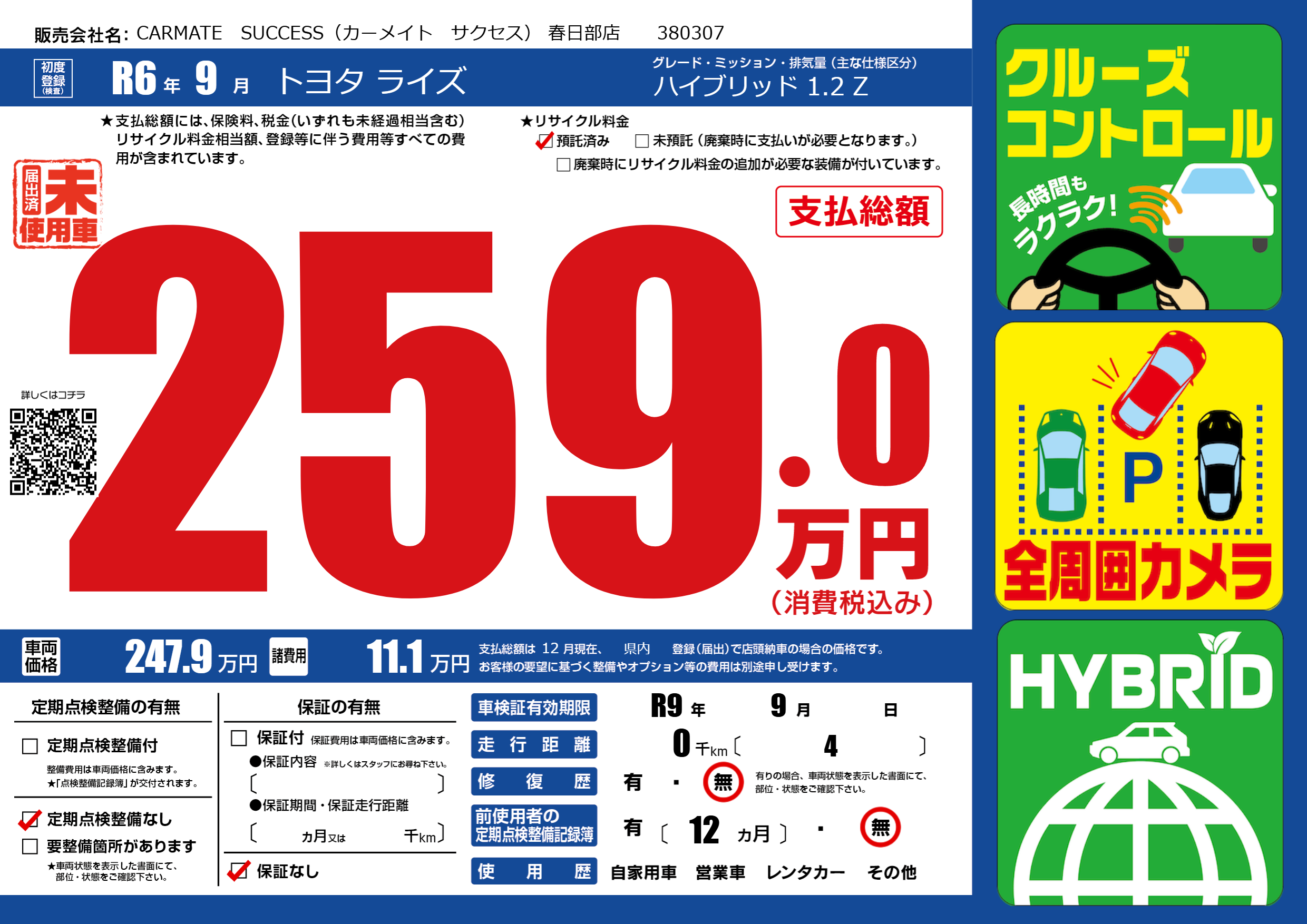 | 走行キロ | - | 初年度登録 | R6年9月 |