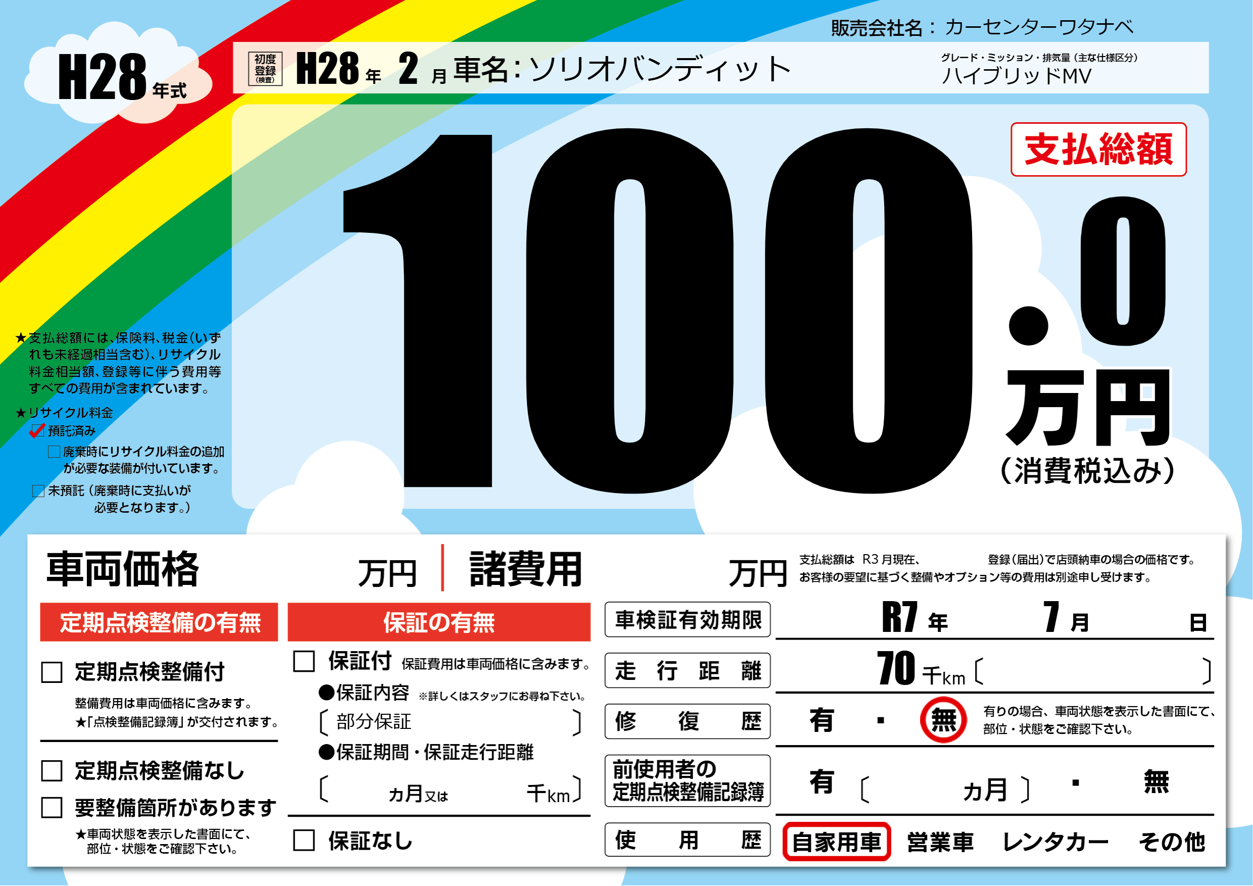 | 車名 | ソリオバンディット | グレード ミッション 排気量 |