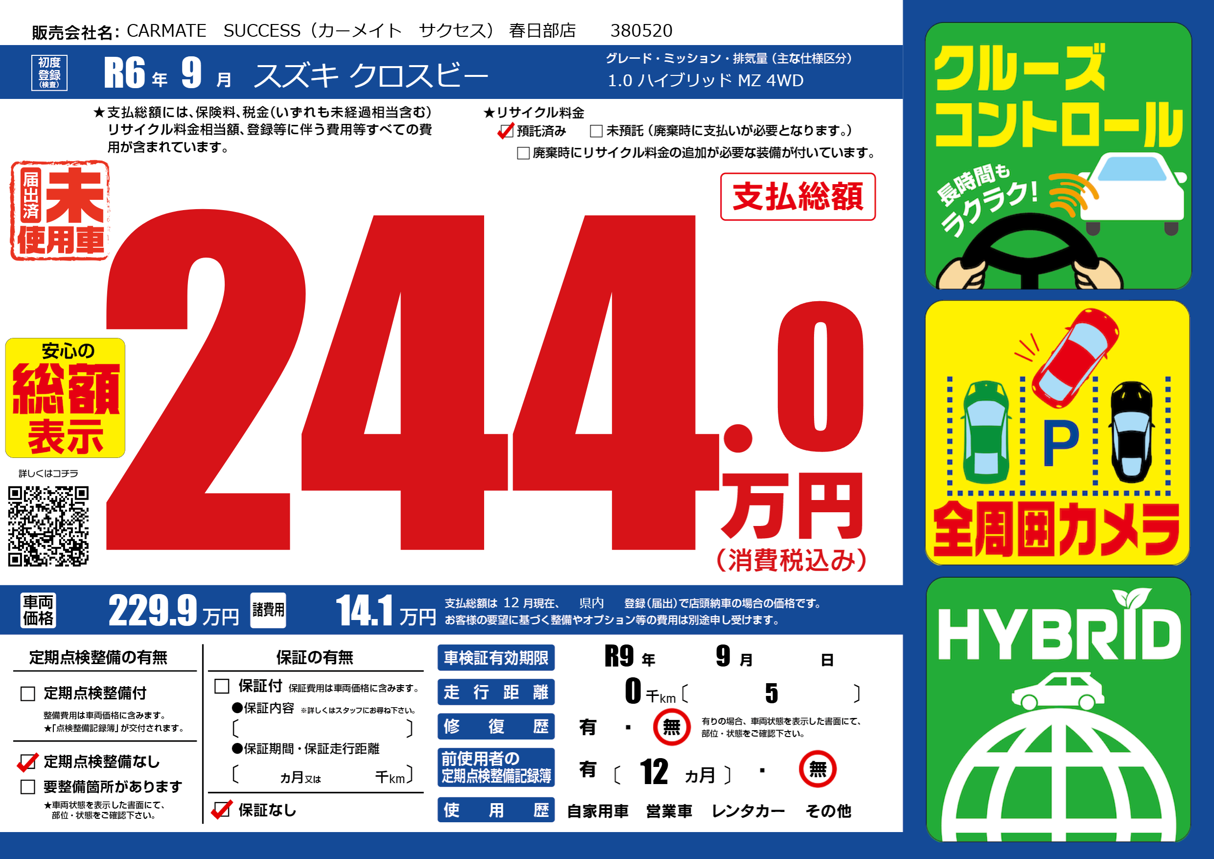 | 走行キロ | - | 初年度登録 | R6年9月 |