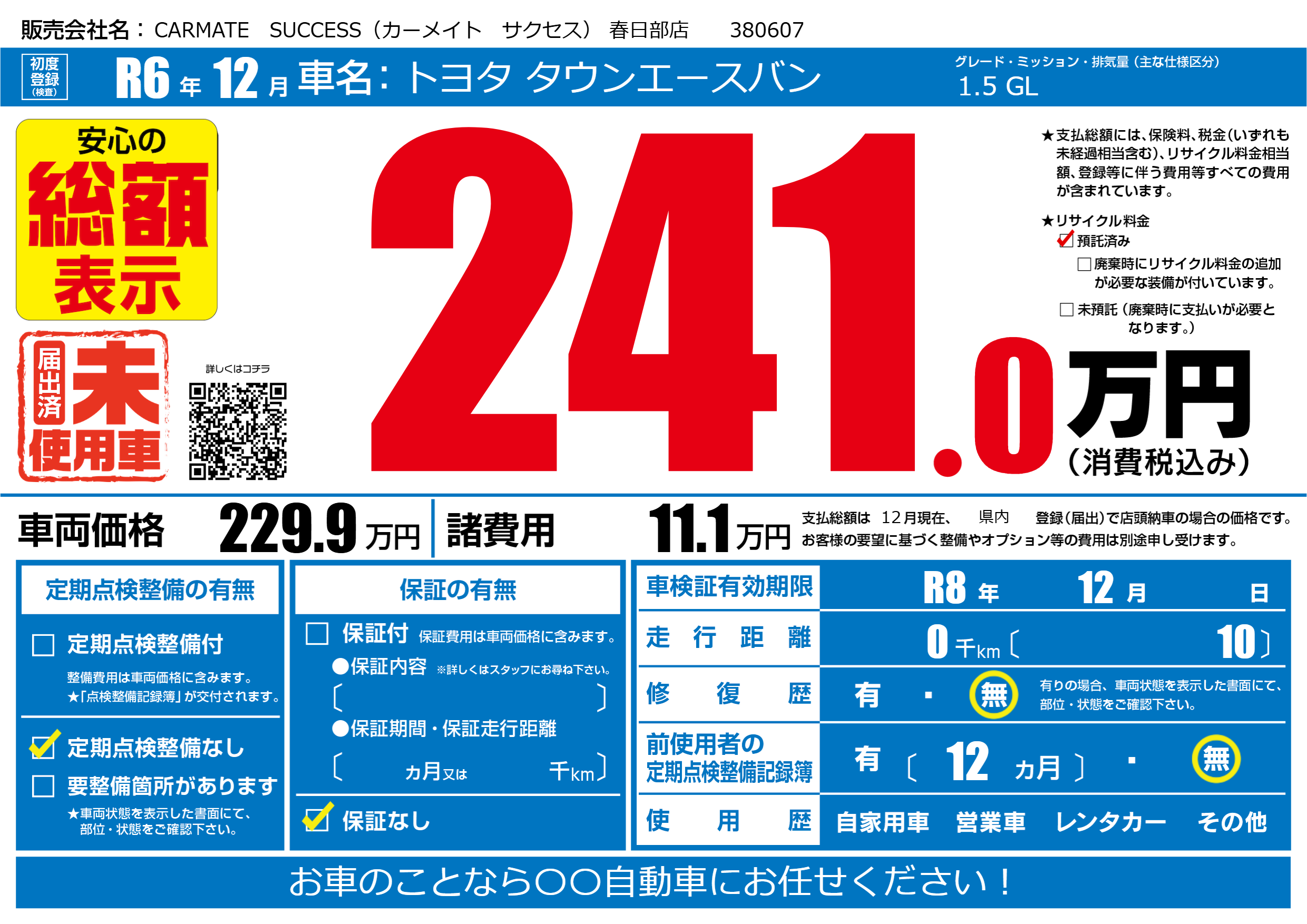 | 走行キロ | - | 初年度登録 | R6年12月 |