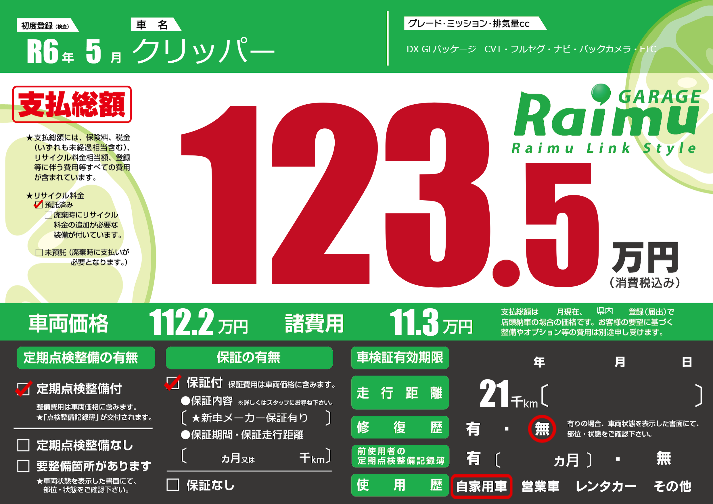 | 車名 | クリッパー | グレード ミッション 排気量 |