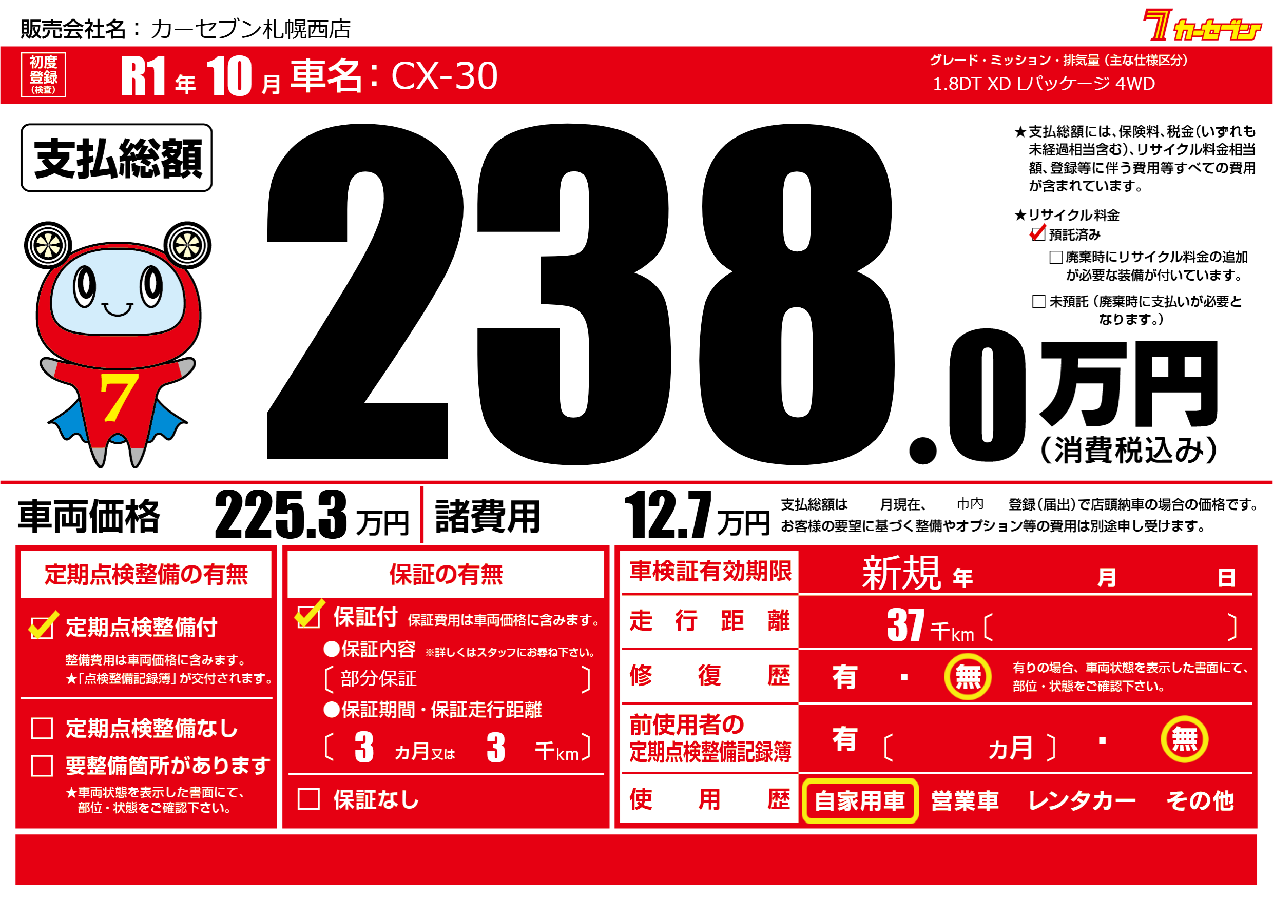 | 車名 | CX-30 | グレード ミッション 排気量 |