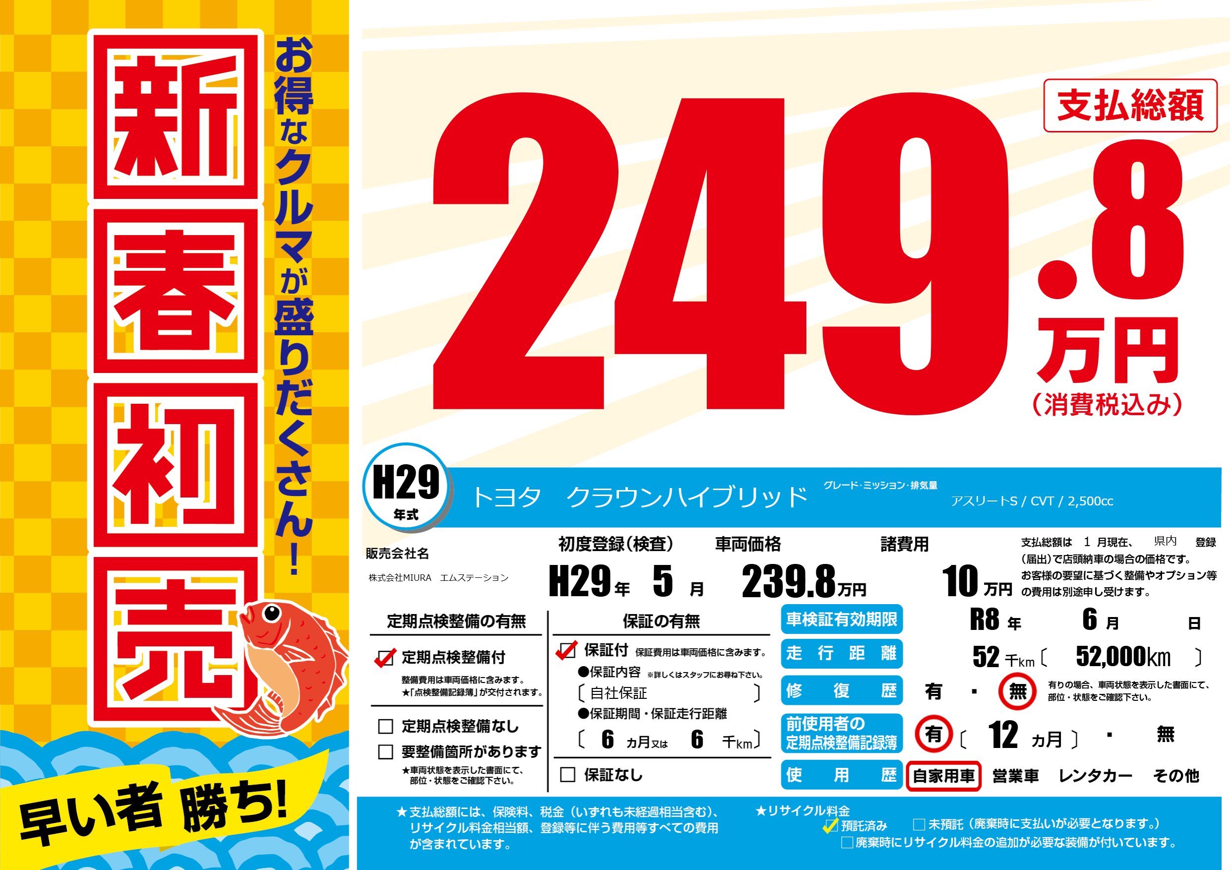 | 車名 | トヨタ クラウンハイブリッド | グレード ミッション 排気量 |