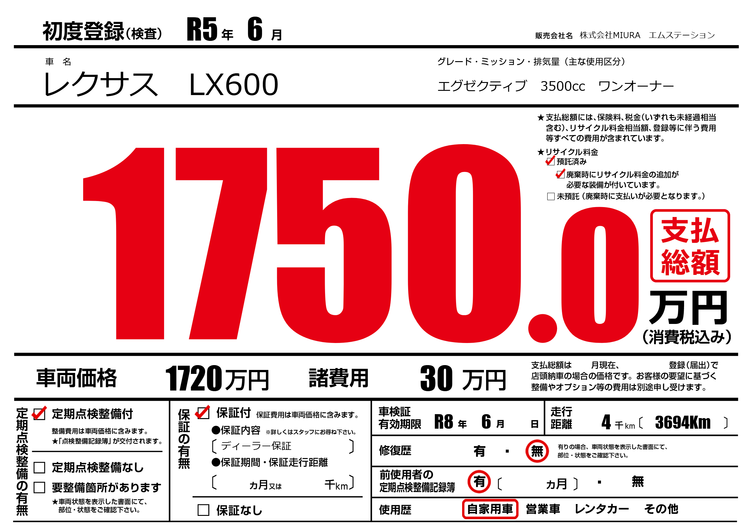 なし | 車検制限 | R8年6月---月 |