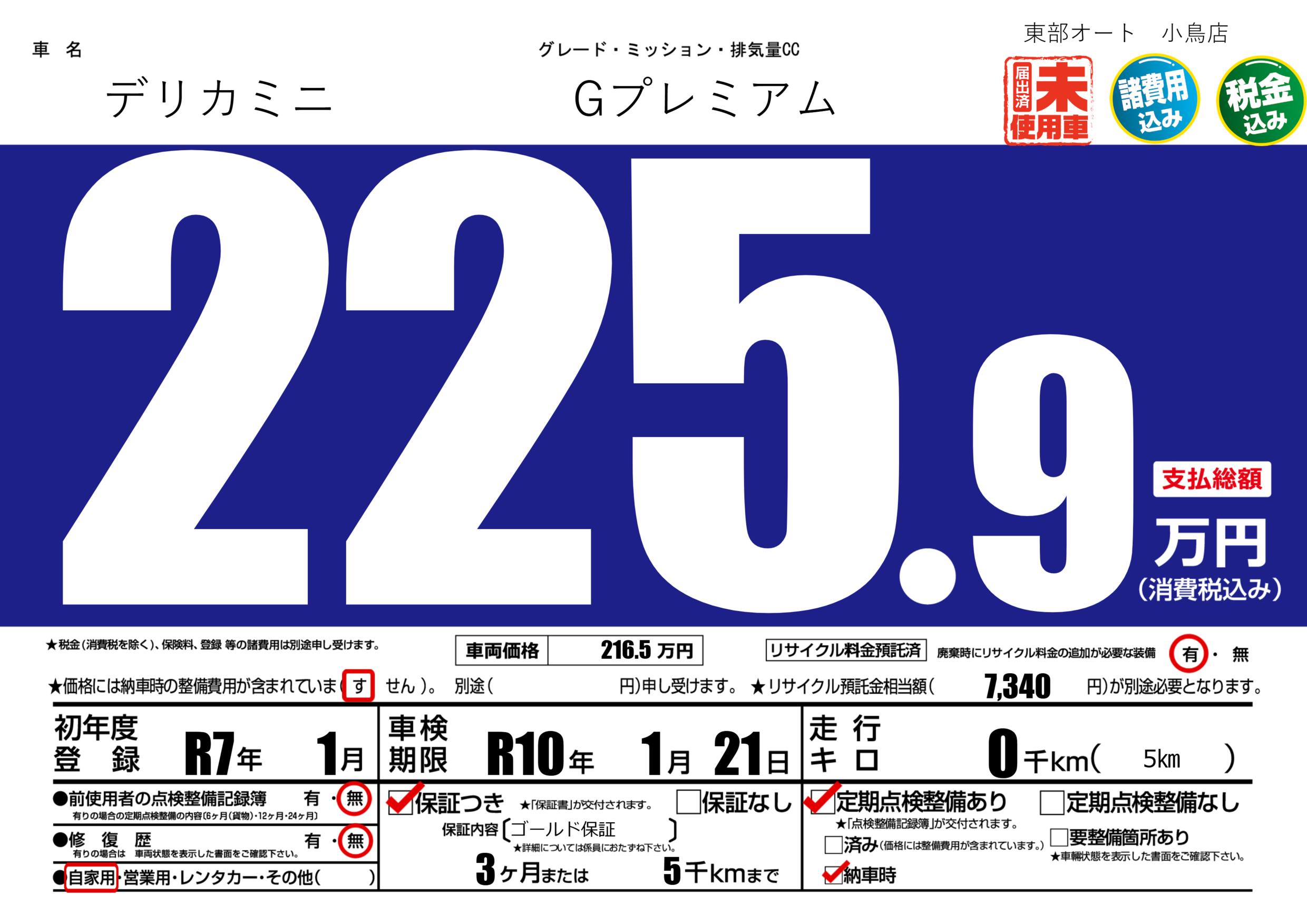 | 車検制限 | R10年 1月 21日 | ||