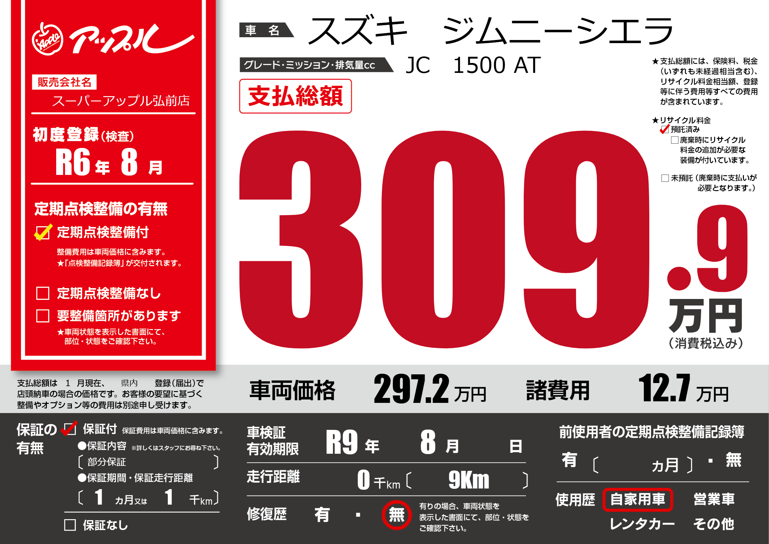 | 走行キロ | - | 初年度登録 | R6年8月 |