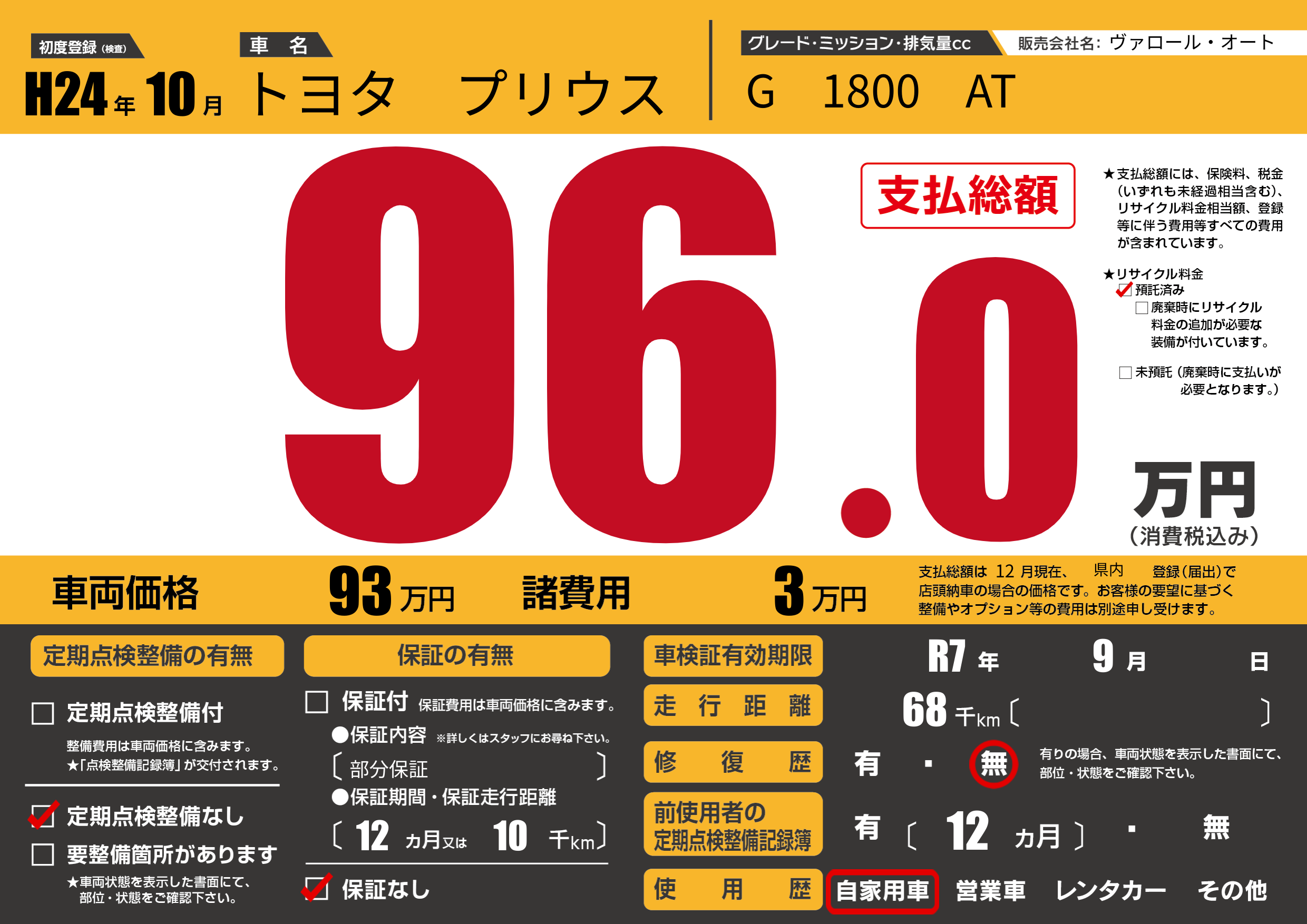 | 車名 | トヨタ プリウス | グレード ミッション 排気量 |