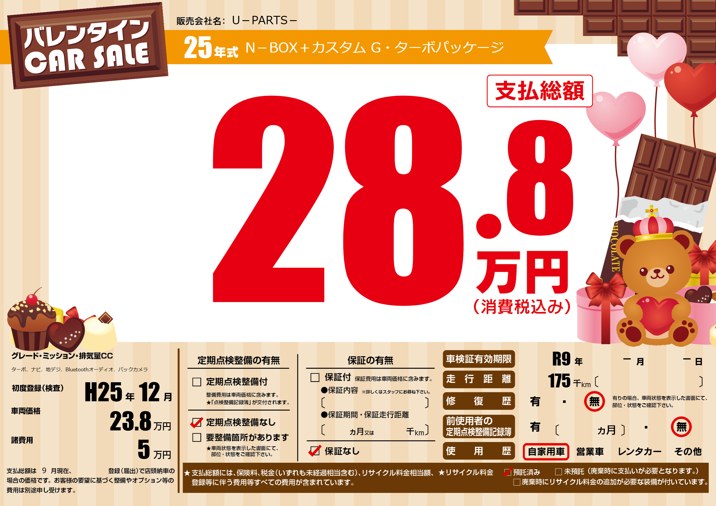 | 車名 | N-BOX+カスタム G・ターボパッケージ | グレード ミッション 排気量 |