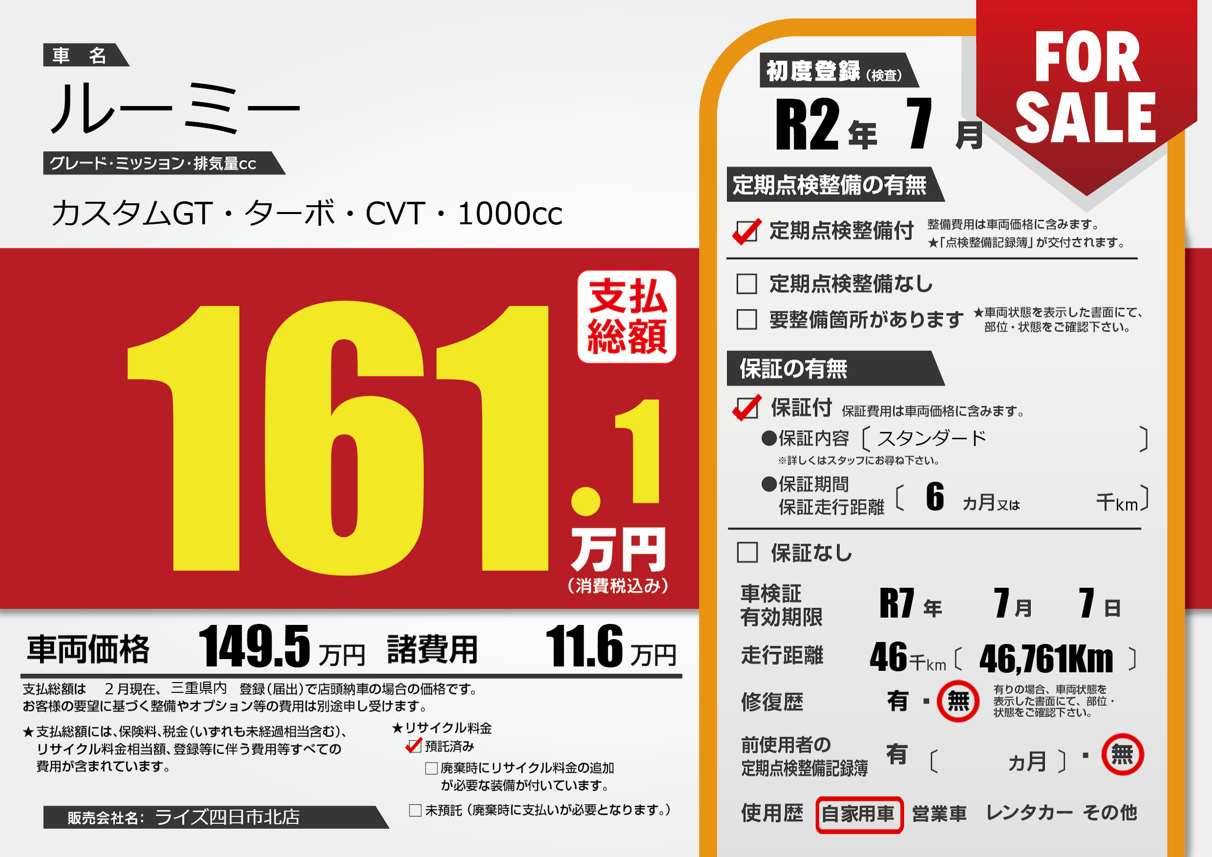 なし | 車検制限 | R7年7月7月 |