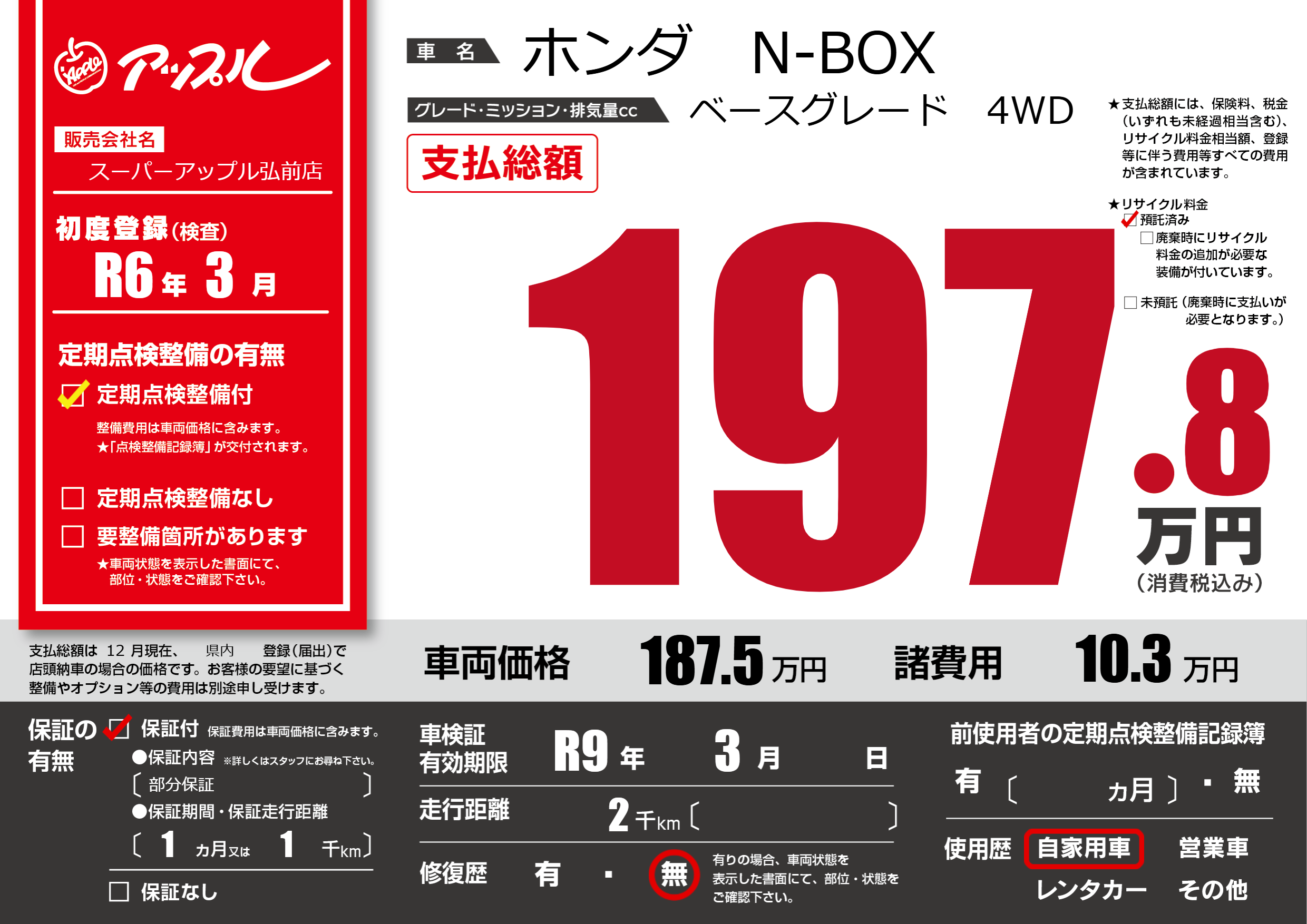| 走行キロ | 0.2万km | 初年度登録 | R6年3月 |