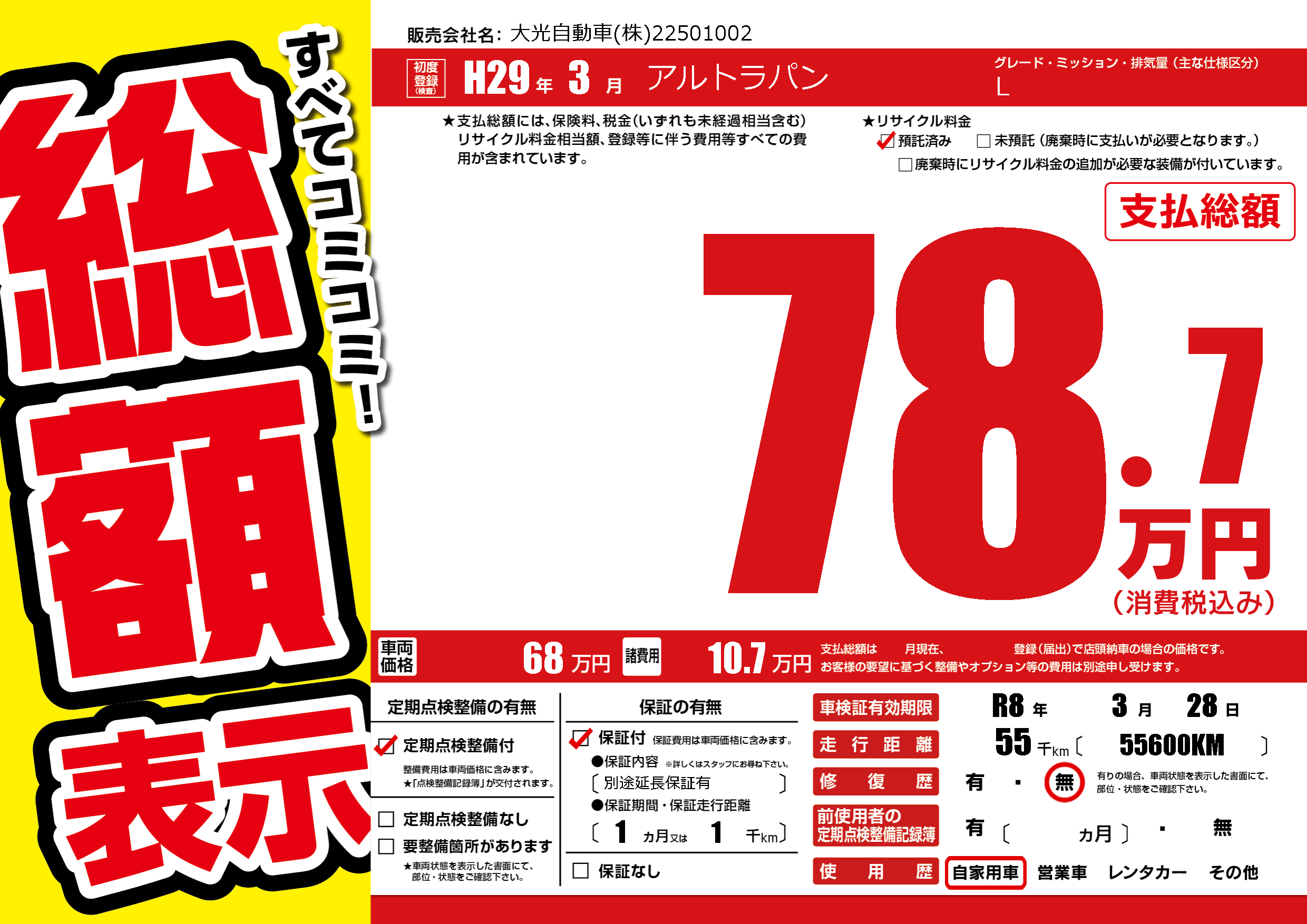 | 車検制限 | R8年 3月 28日 | ||