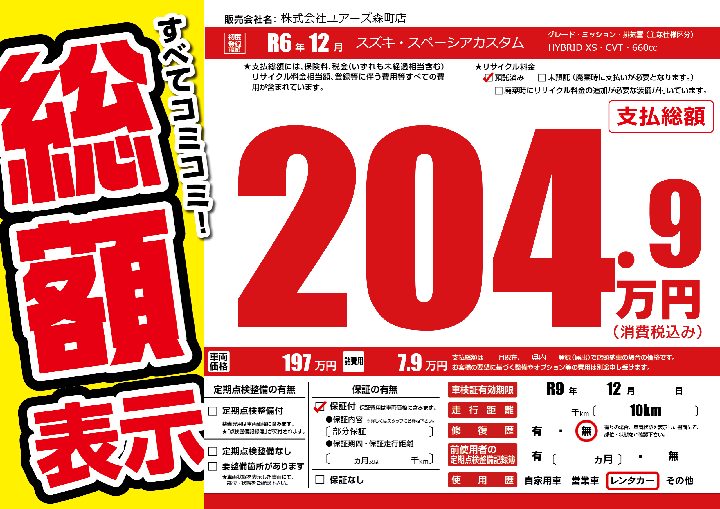 なし | 車検制限 | R9年12月---月 |