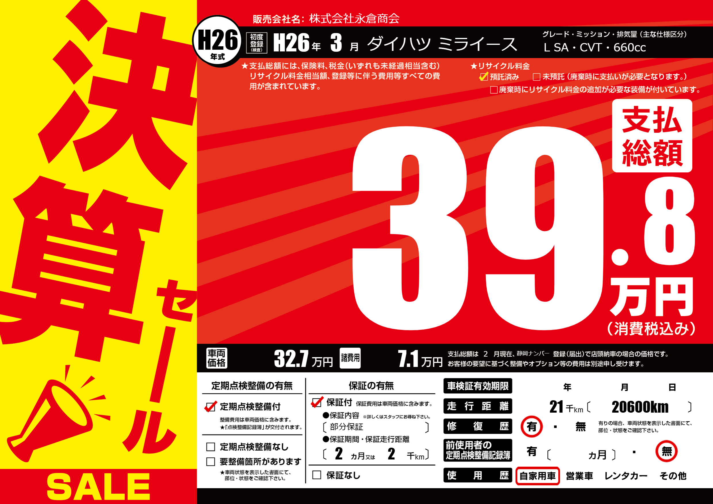 | 定期点検整備 | 定期点検整備あり | ||