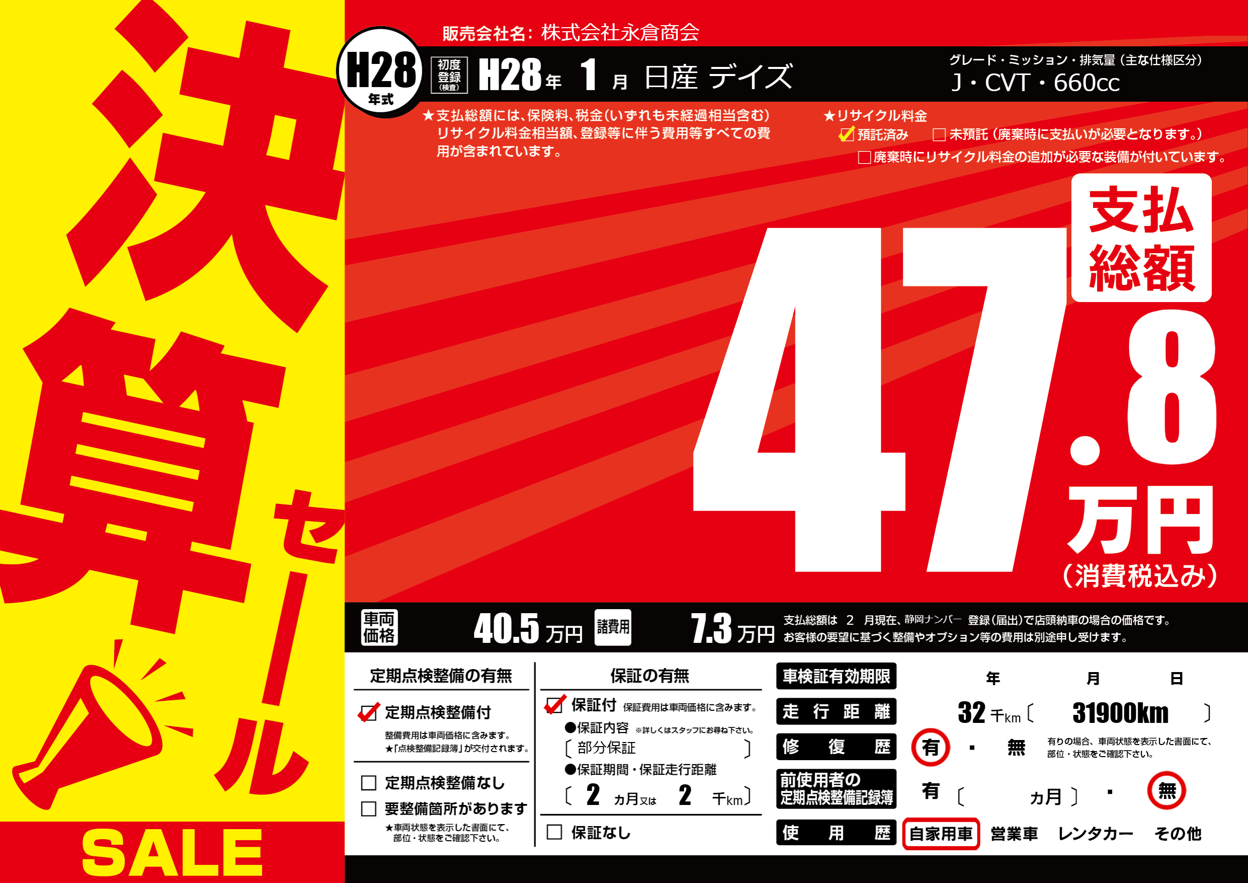 | 定期点検整備 | 定期点検整備あり | ||