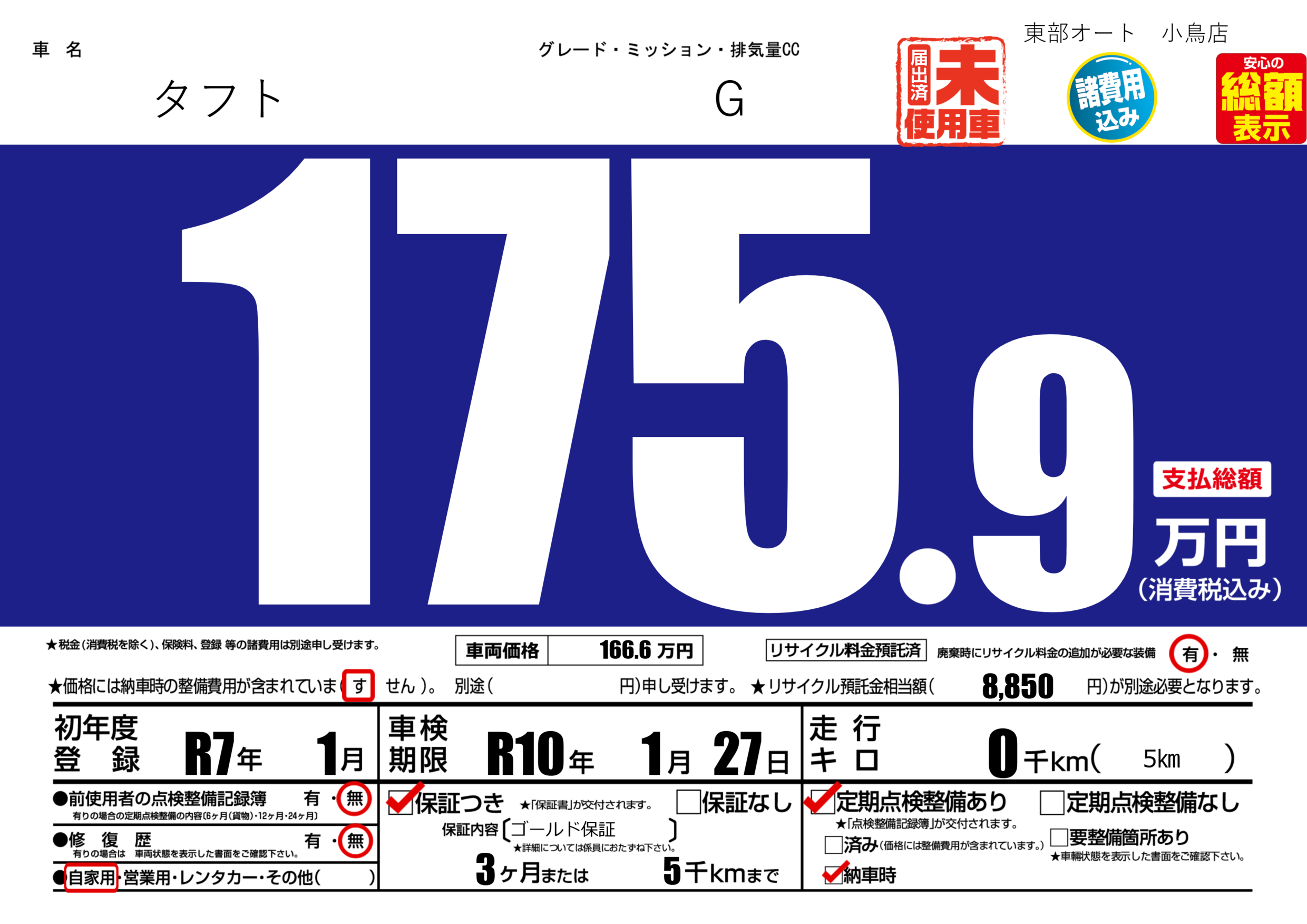 | 定期点検整備 | 定期点検整備あり 納車時あり | ||