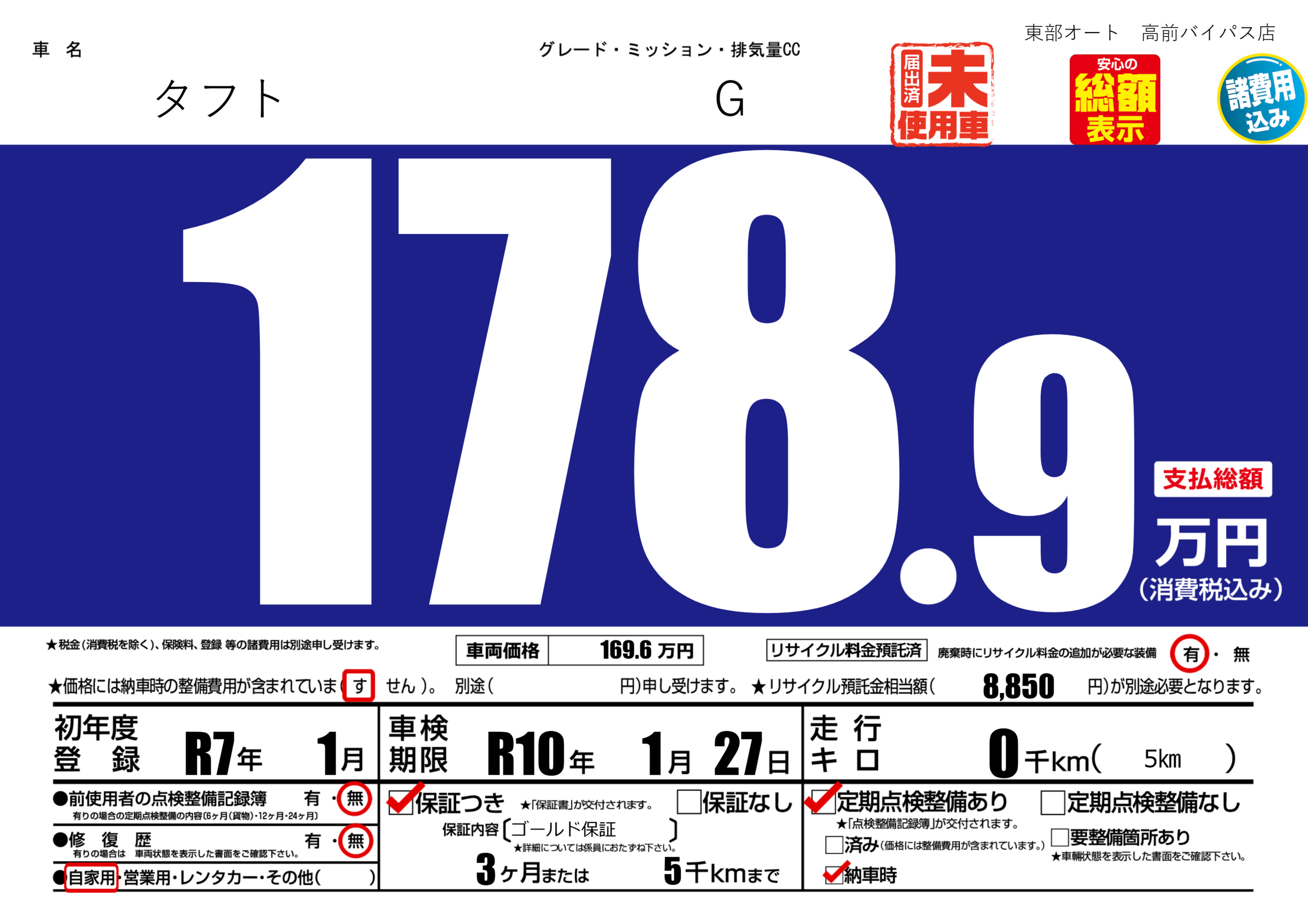 保証付き 保証内容(ゴールド保証) 3ヶ月または5千km |