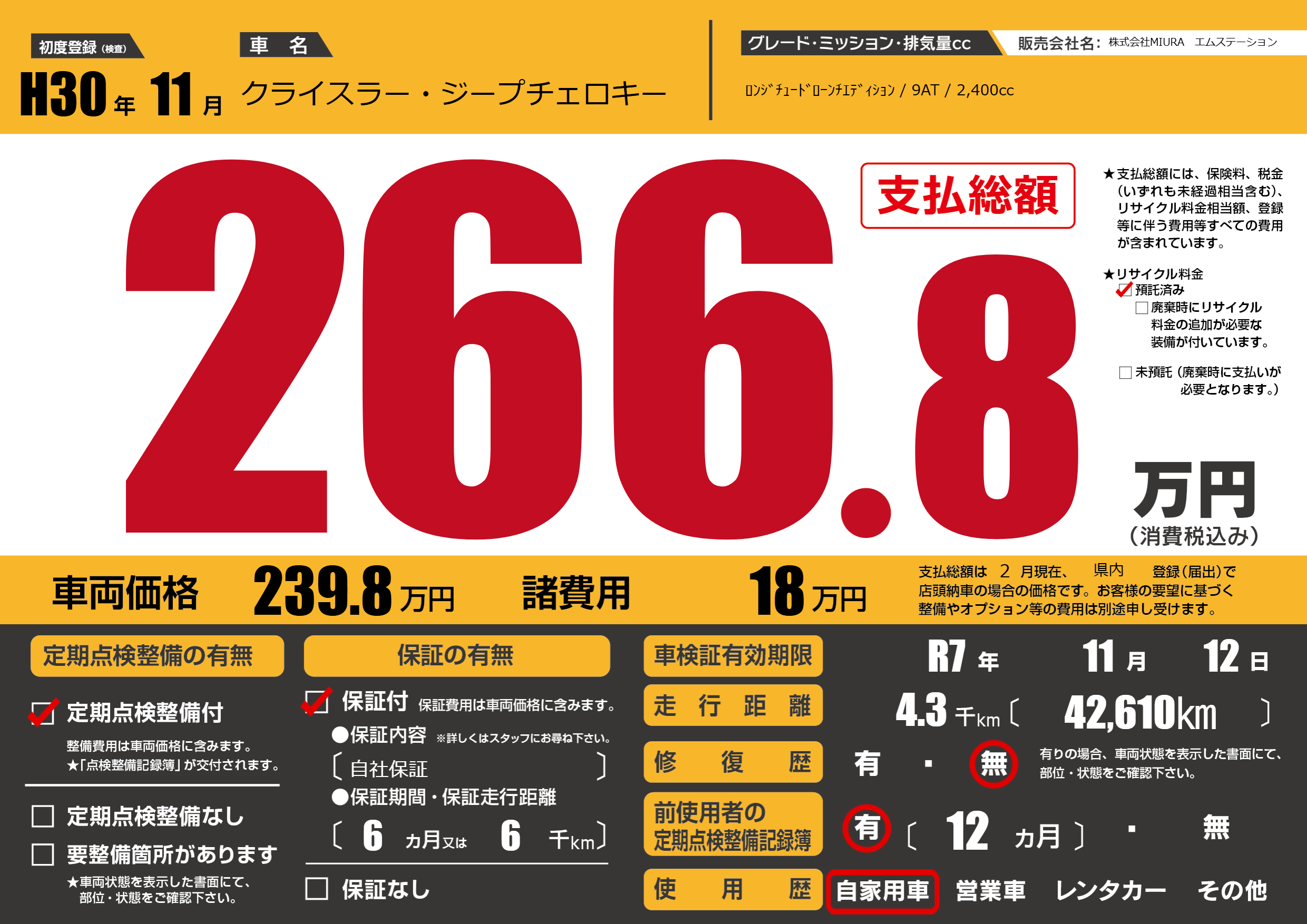 なし | 車検制限 | R7年11月12月 |