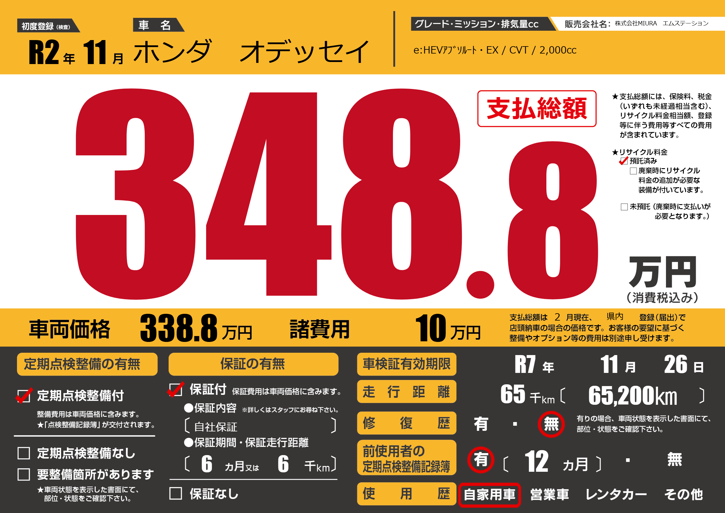 | 車検制限 | R7年 11月 26日 | ||
